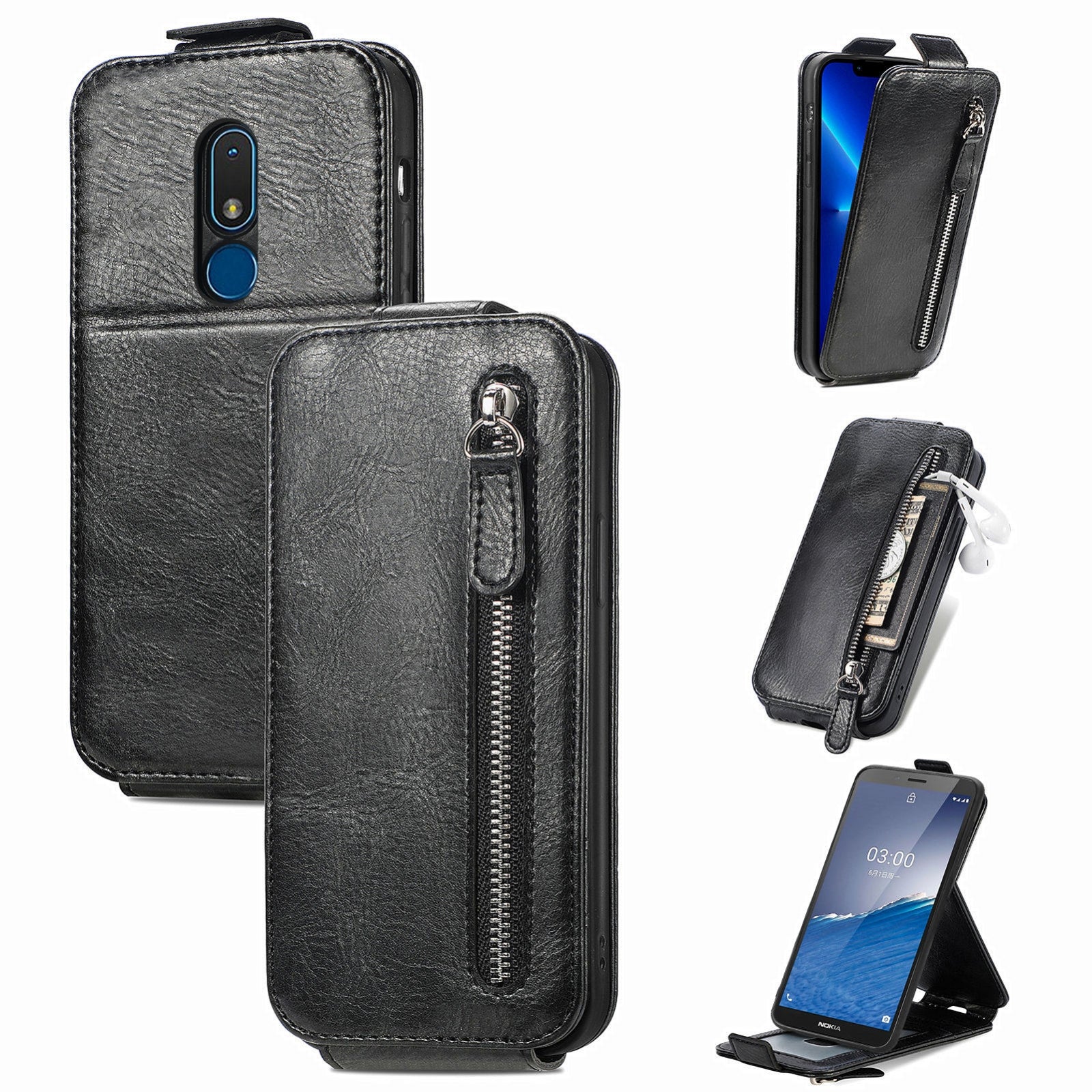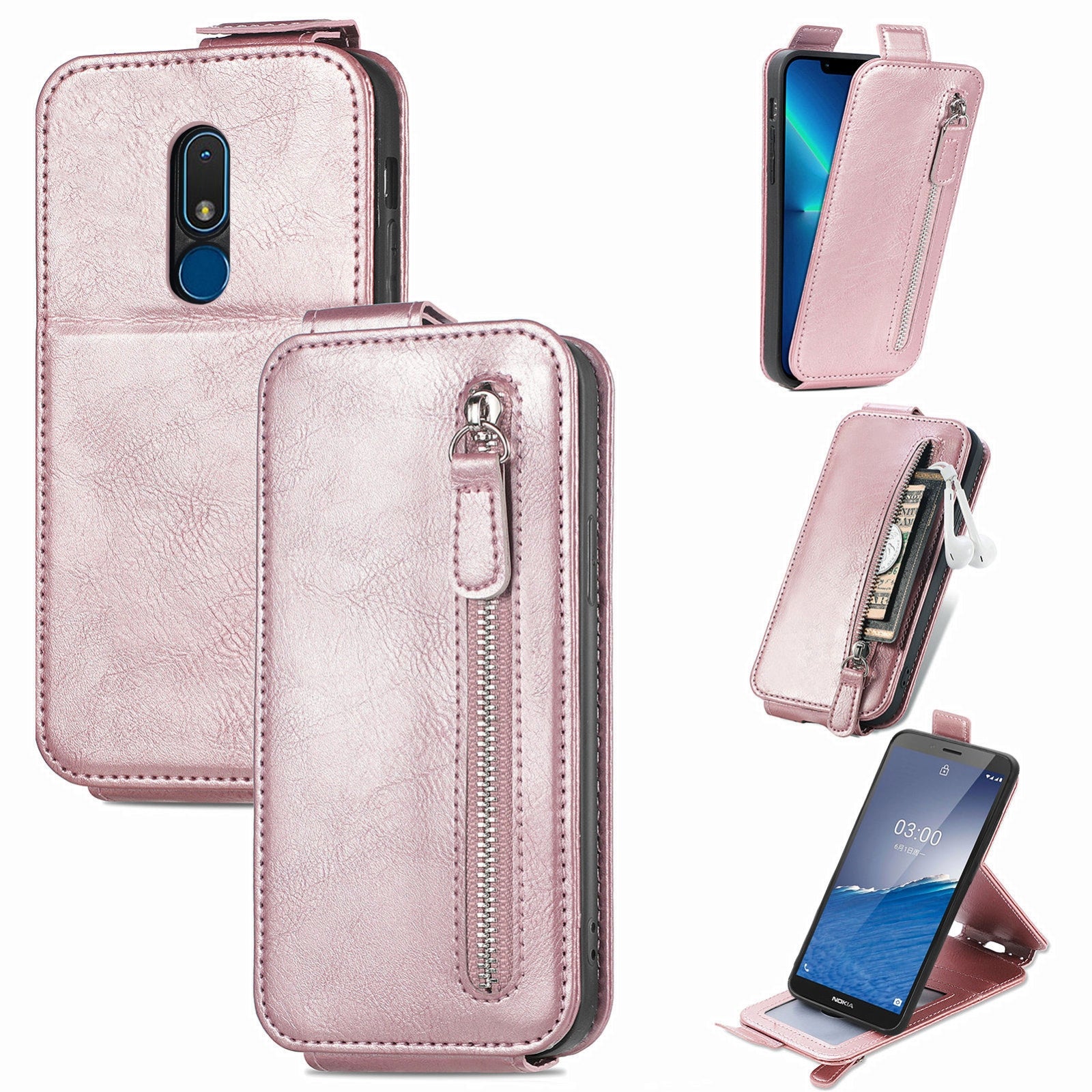 Nokia C3 Zipper Wallet Case - Vertical Flip Leather Phone Cover with Multiple Card Slots and Stand