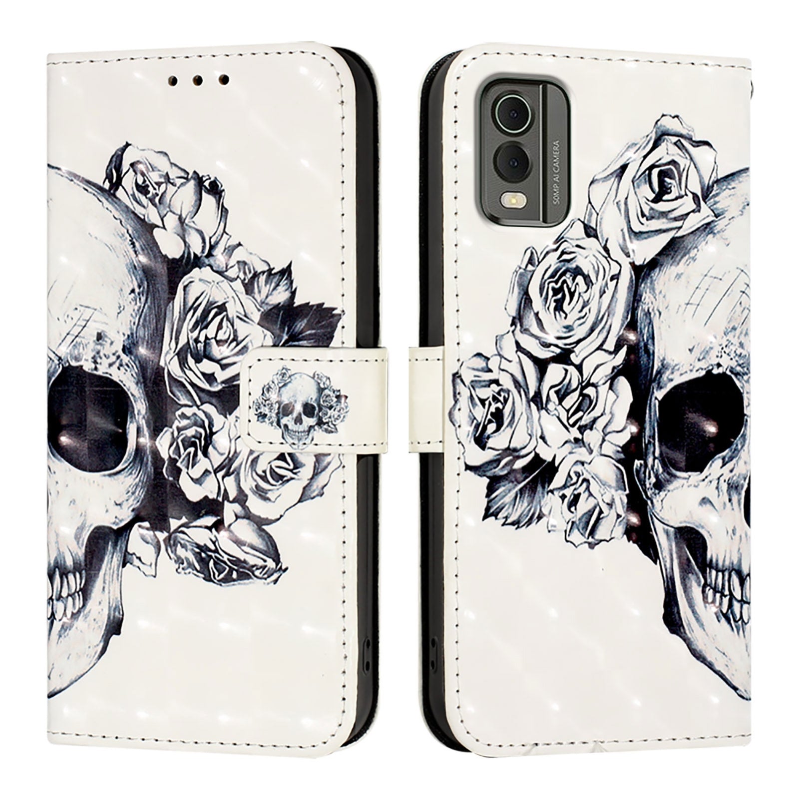 Nokia C32 Leather Flip Phone Case with 3D Painted Design, Card Holder, Wallet & Stand Function - Durable Protection & Easy Access