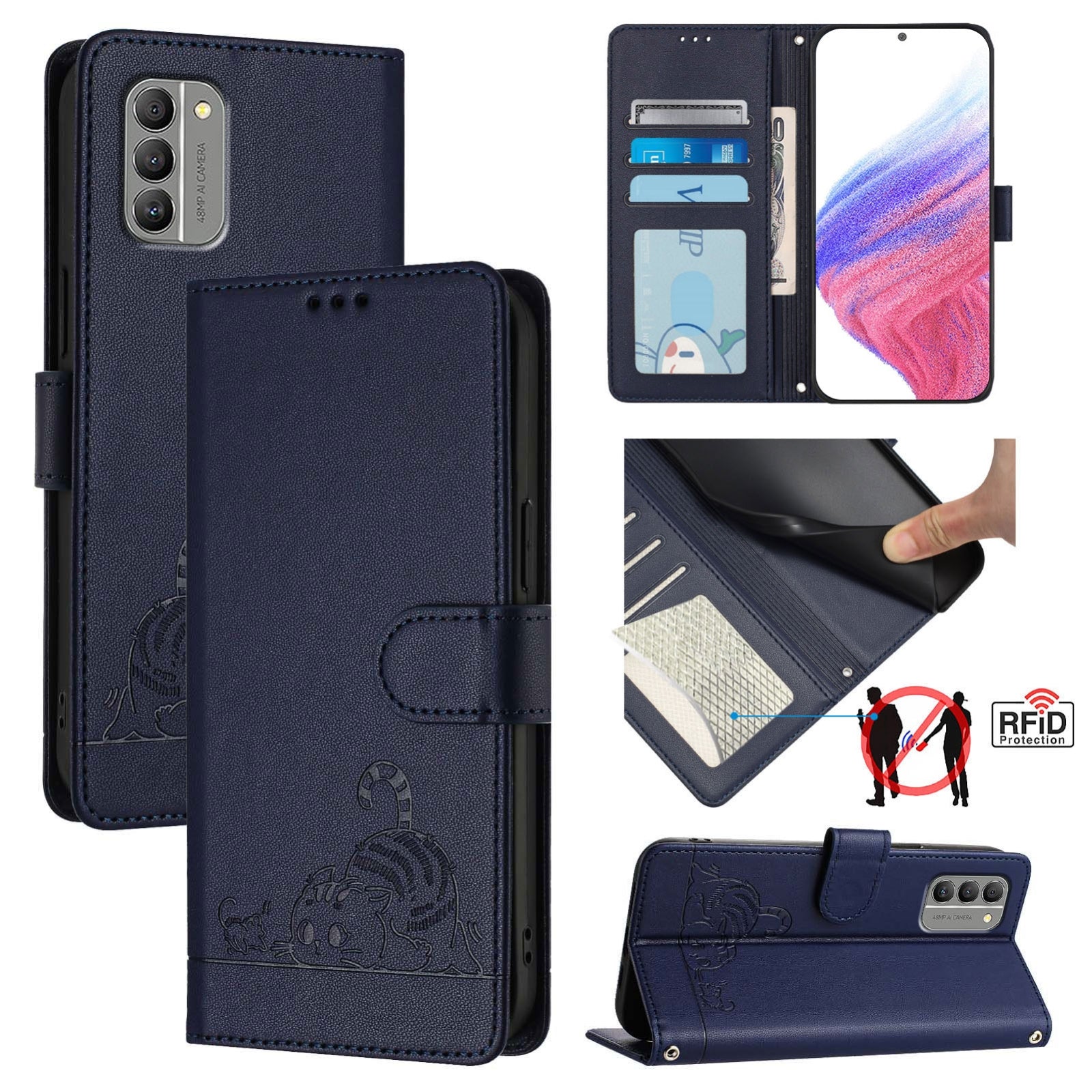 Nokia G400 Cat and Rat Embossed Pattern, RFID Leather Phone Case with Lanyard, Kickstand, and Wallet Features