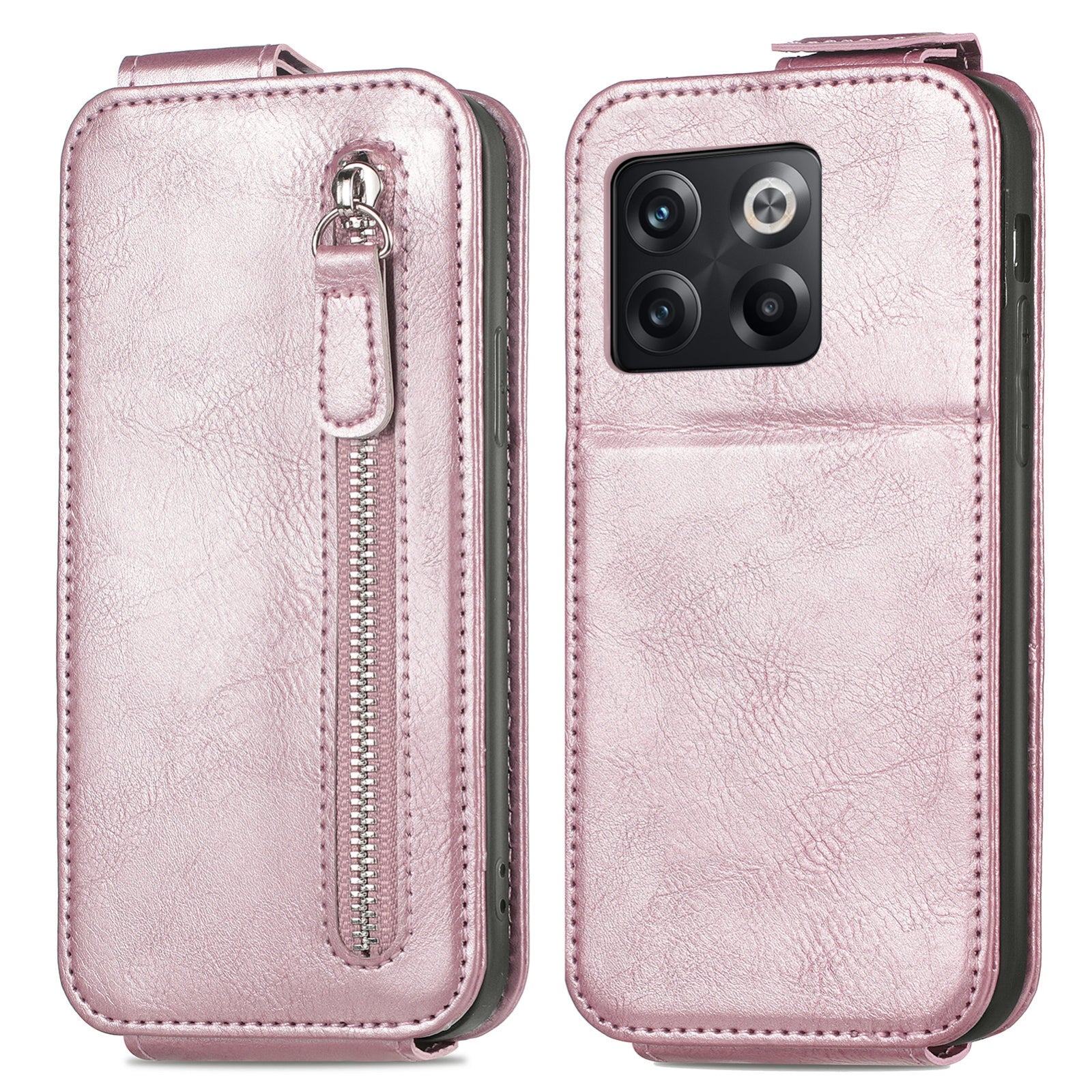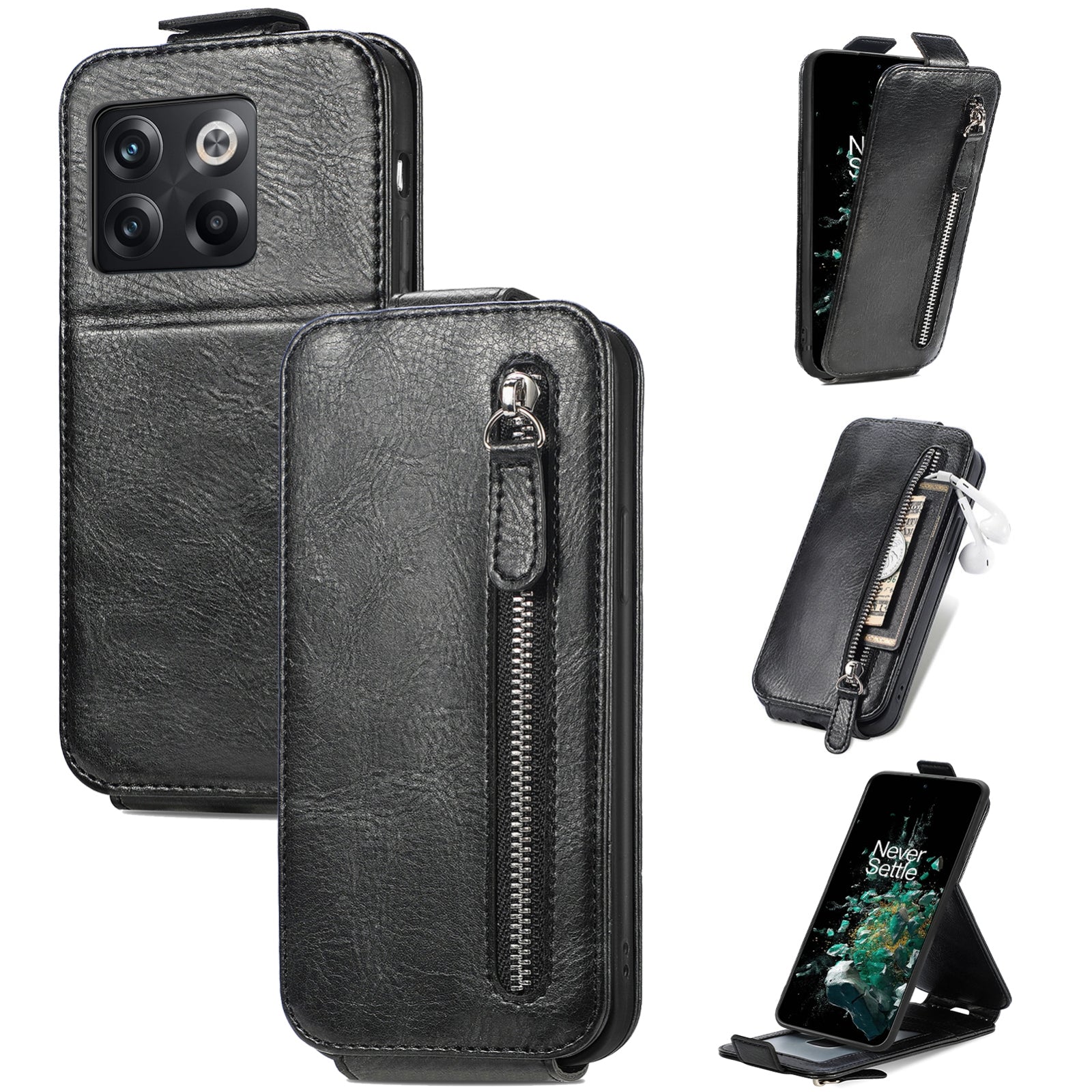 OnePlus 10T Zipper Wallet Case - Vertical Flip Leather Phone Cover with Multiple Card Slots and Stand