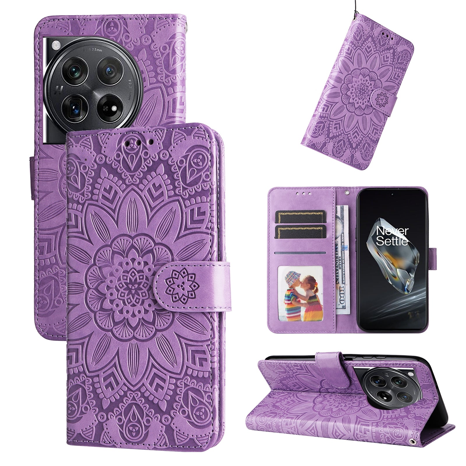 OnePlus 12 Sunflower Embossed Leather Wallet Phone Case with Kickstand and Card Holder