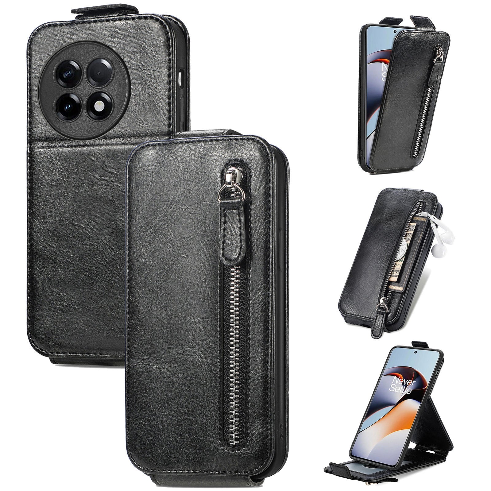 OnePlus Ace 2 Zipper Wallet Case - Vertical Flip Leather Phone Cover with Multiple Card Slots and Stand