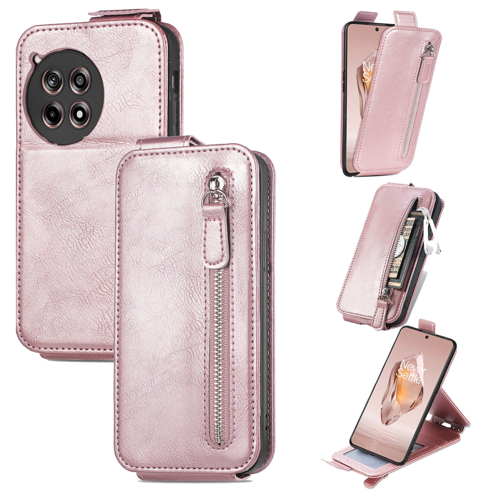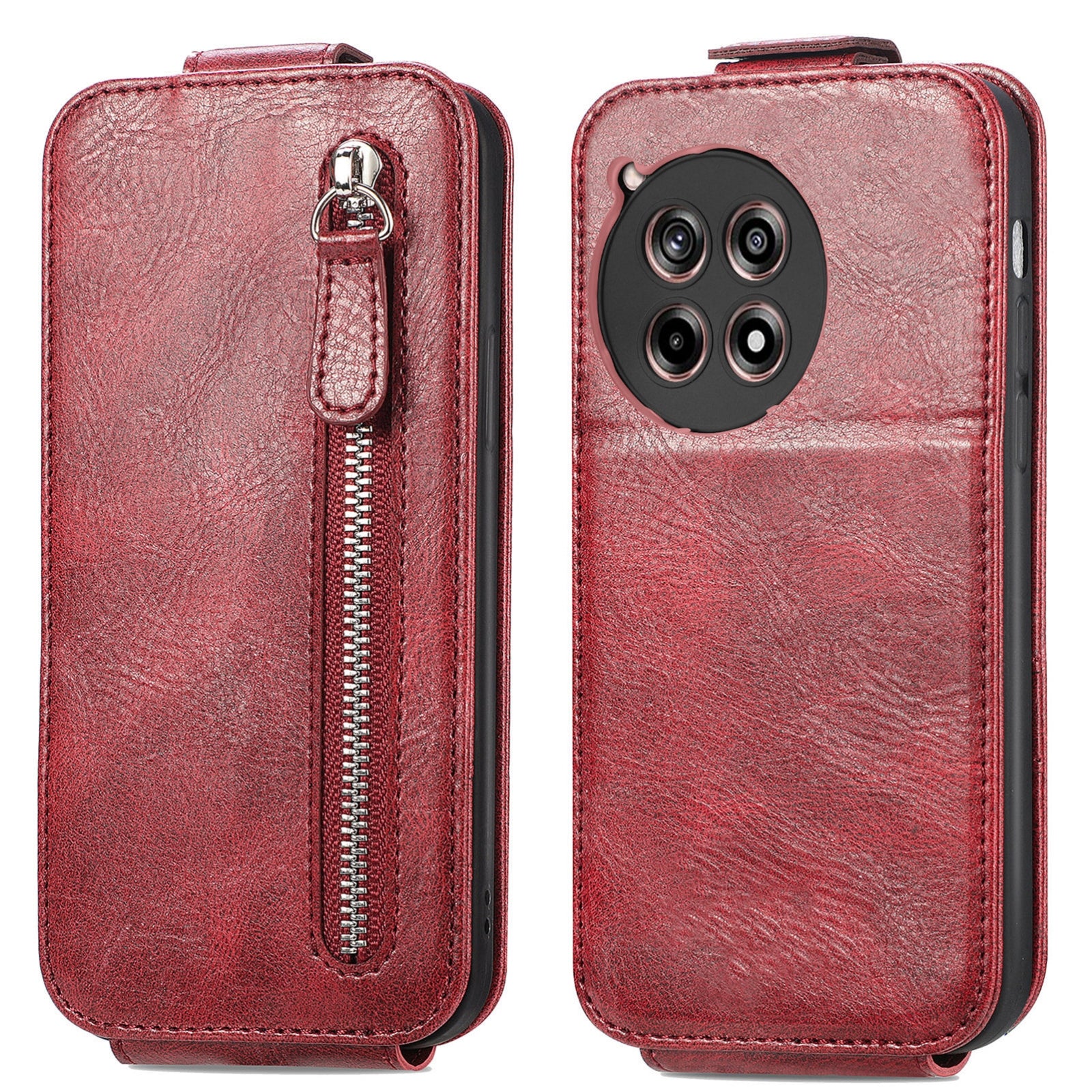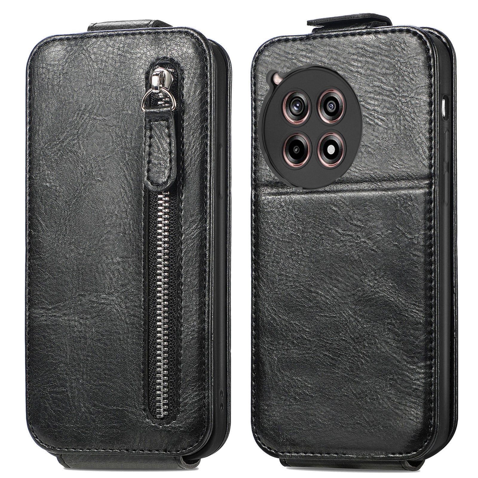 OnePlus Ace 3 Zipper Wallet Case - Vertical Flip Leather Phone Cover with Multiple Card Slots and Stand