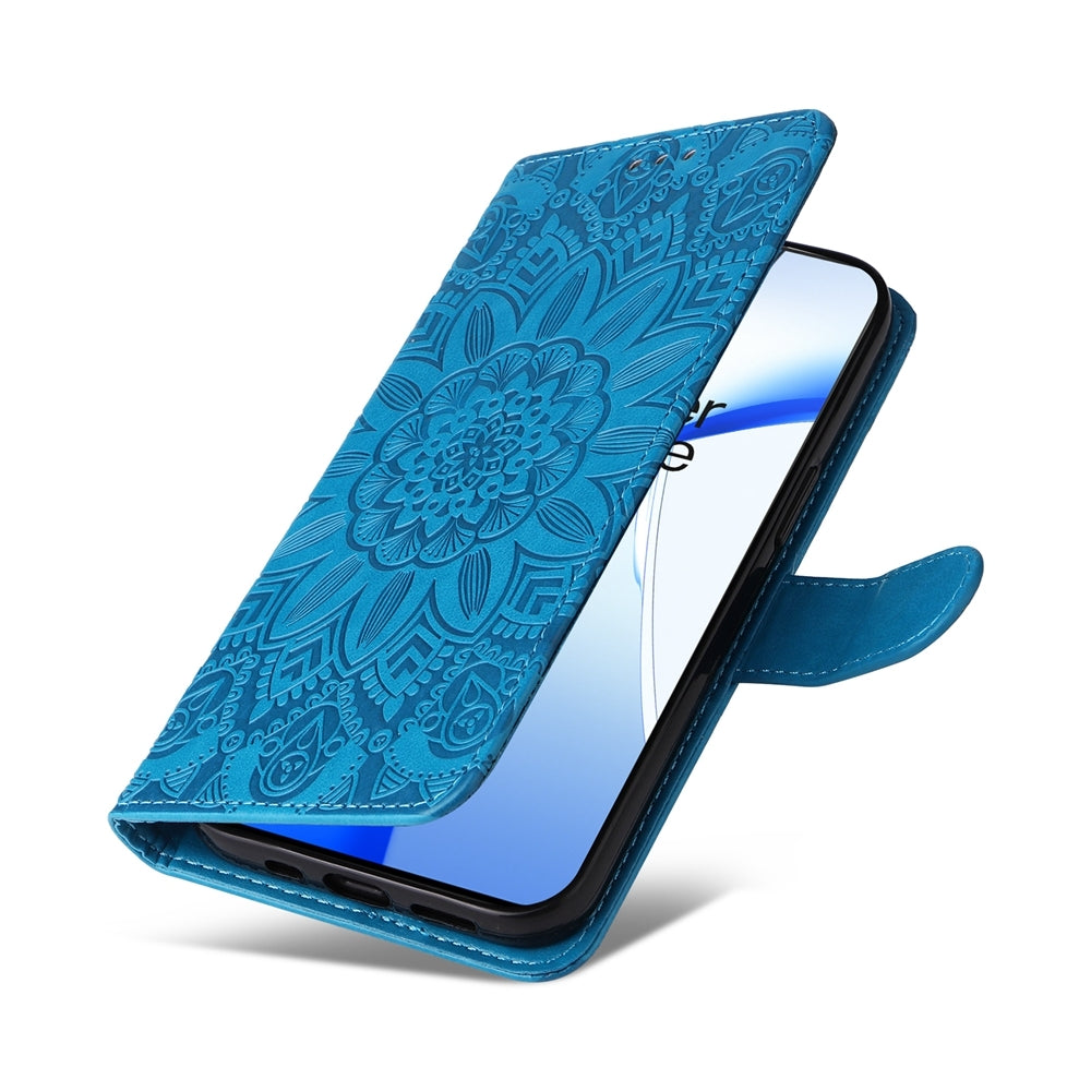 OnePlus Ace 3V Sunflower Embossed Leather Wallet Phone Case with Kickstand and Card Holder