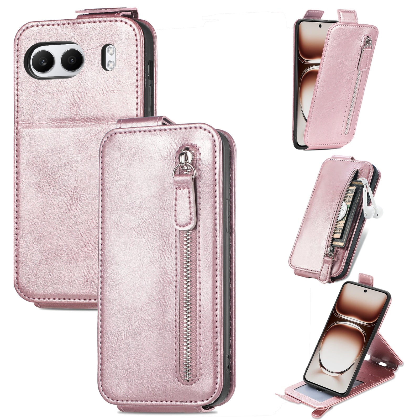 OnePlus Nord 4 Zipper Wallet Case - Vertical Flip Leather Phone Cover with Multiple Card Slots and Stand