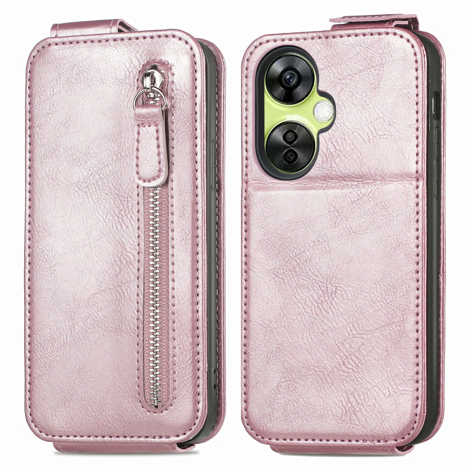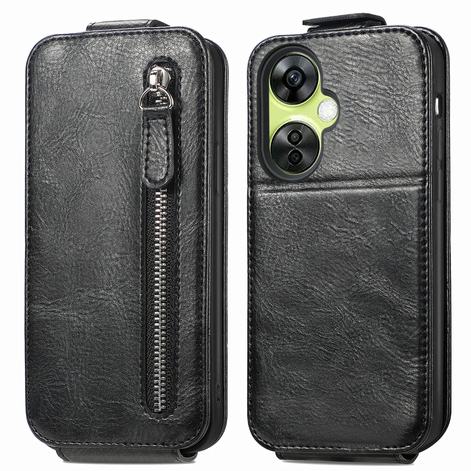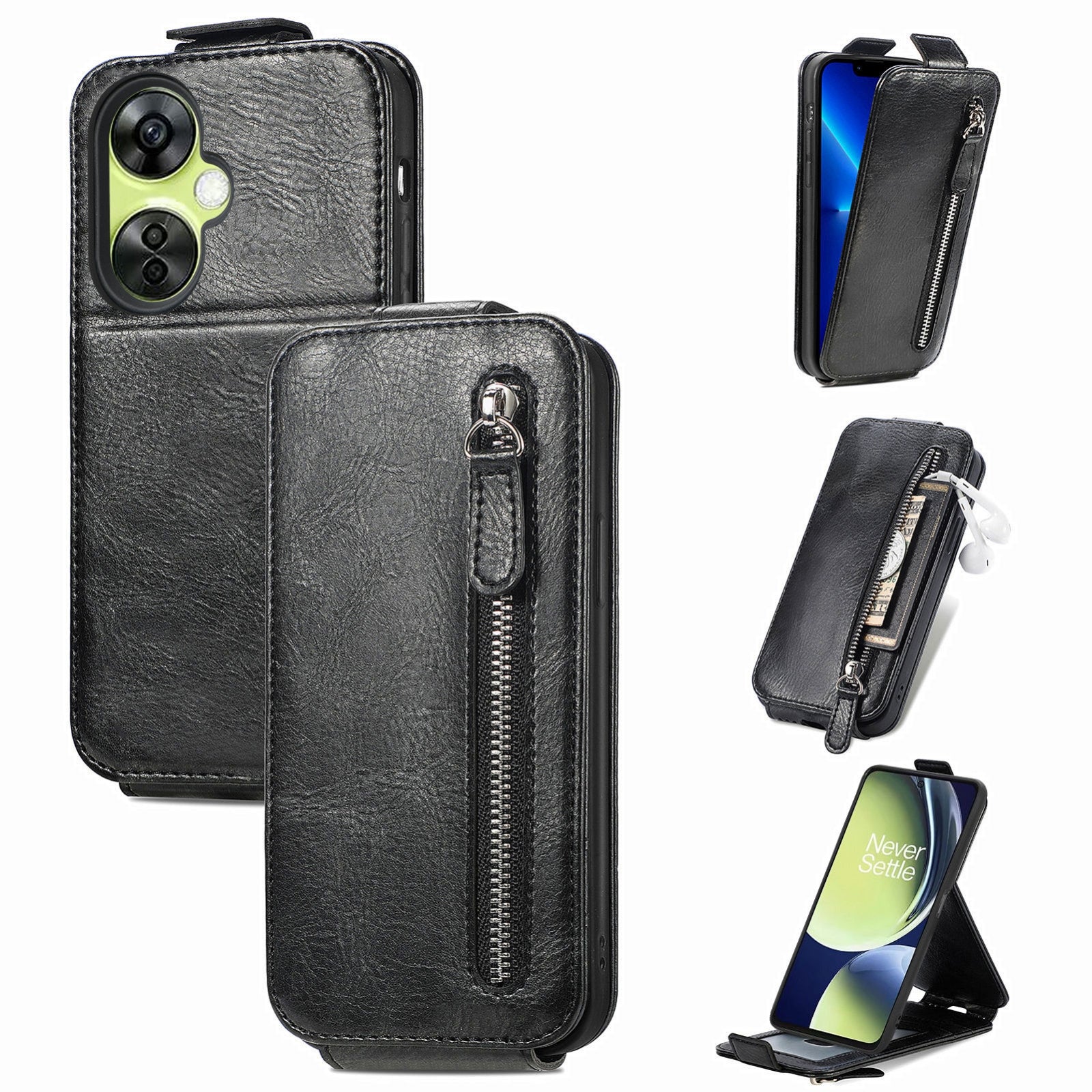 OnePlus Nord CE 3 Lite Zipper Wallet Case - Vertical Flip Leather Phone Cover with Multiple Card Slots and Stand
