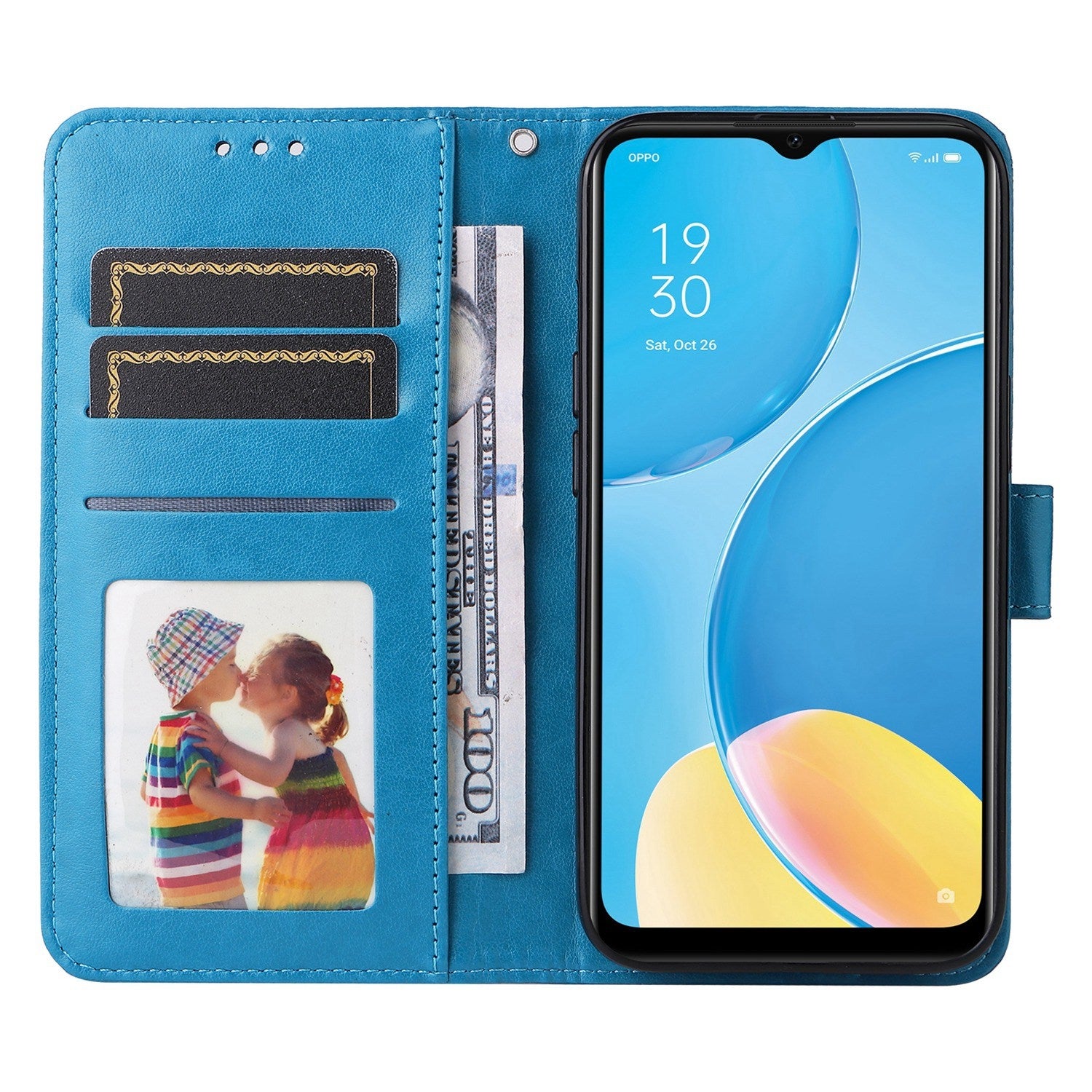 OPPO A15 Sunflower Embossed Leather Wallet Phone Case with Kickstand and Card Holder