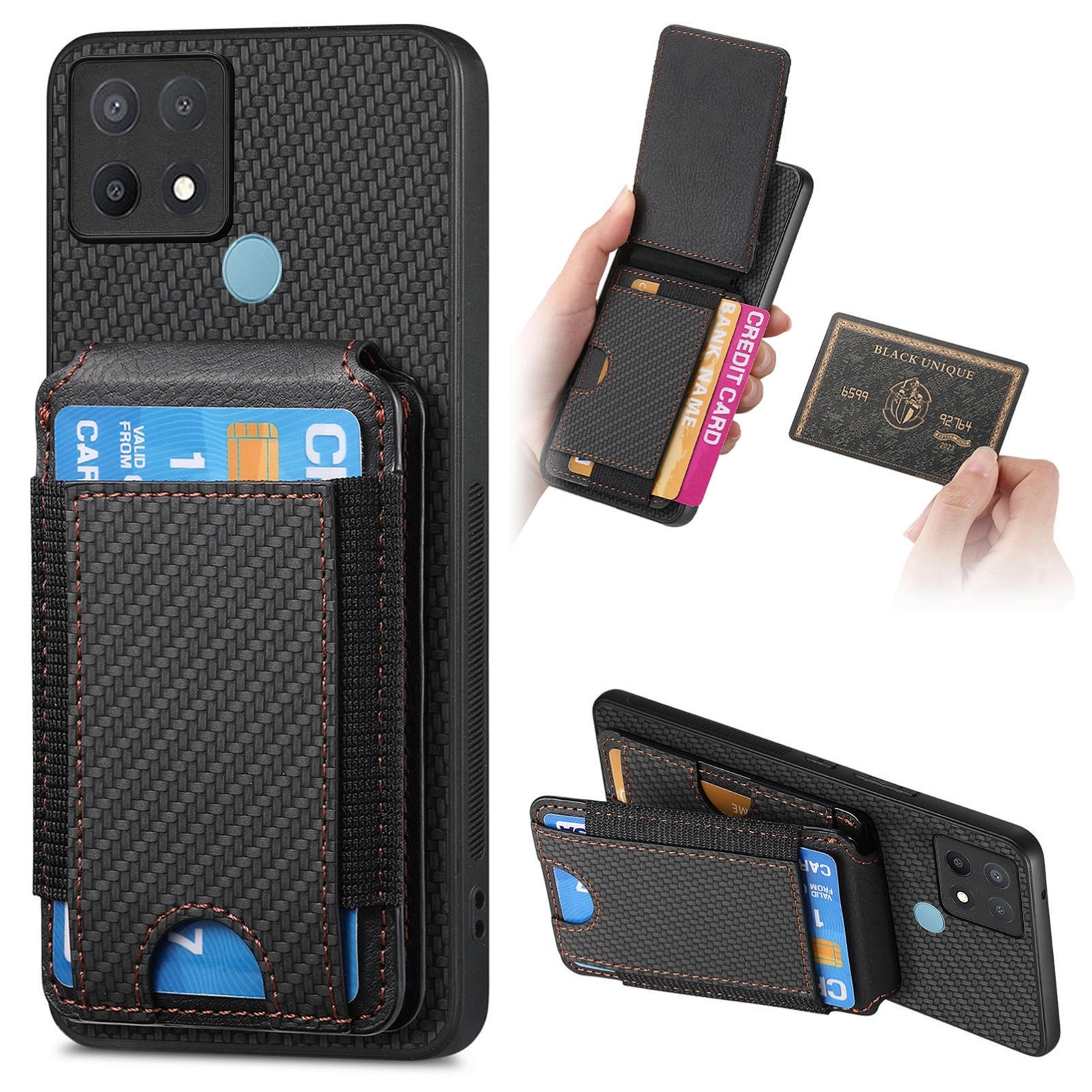 OPPO A15 Vertical Flip Wallet Stand Phone Case with Carbon Fibre Pattern