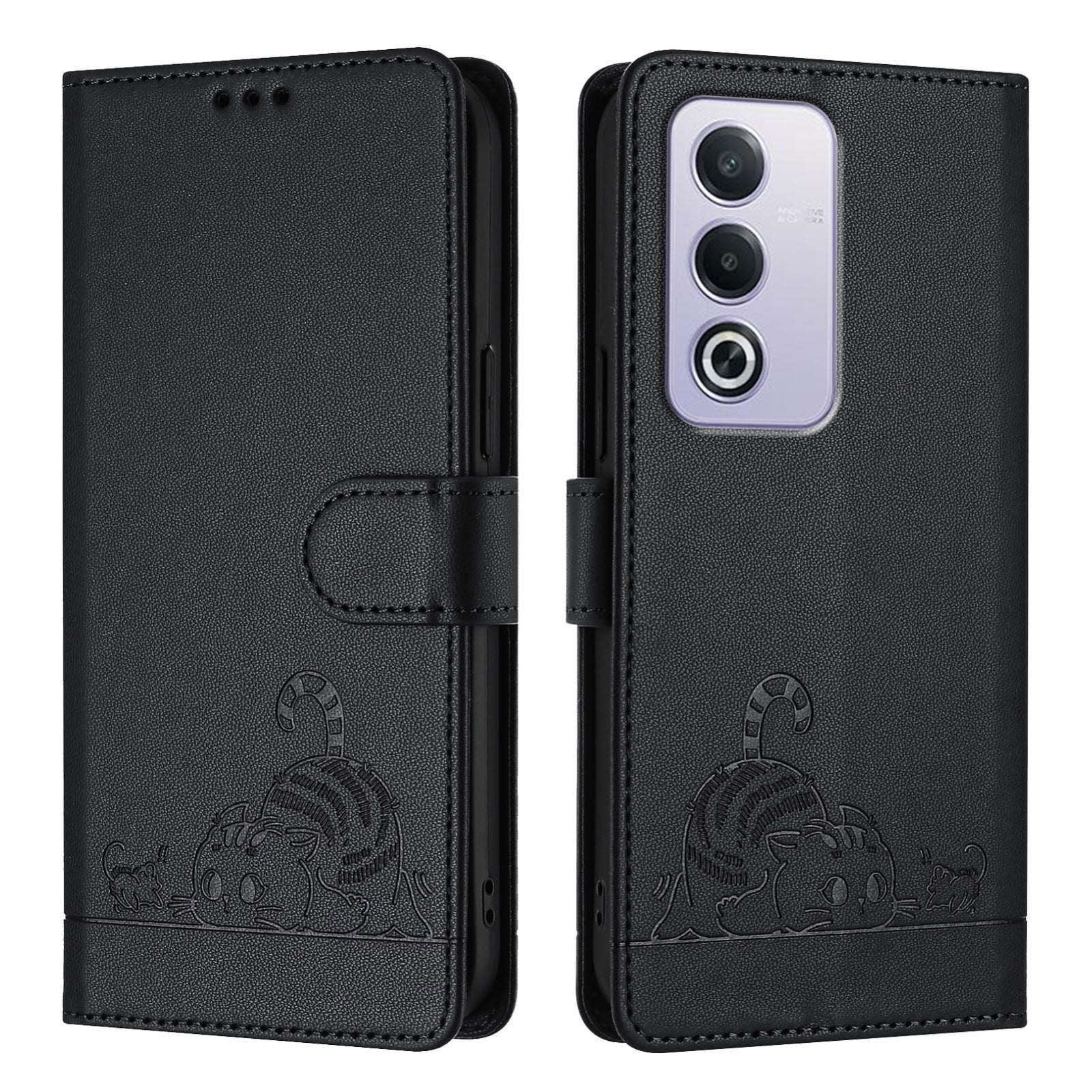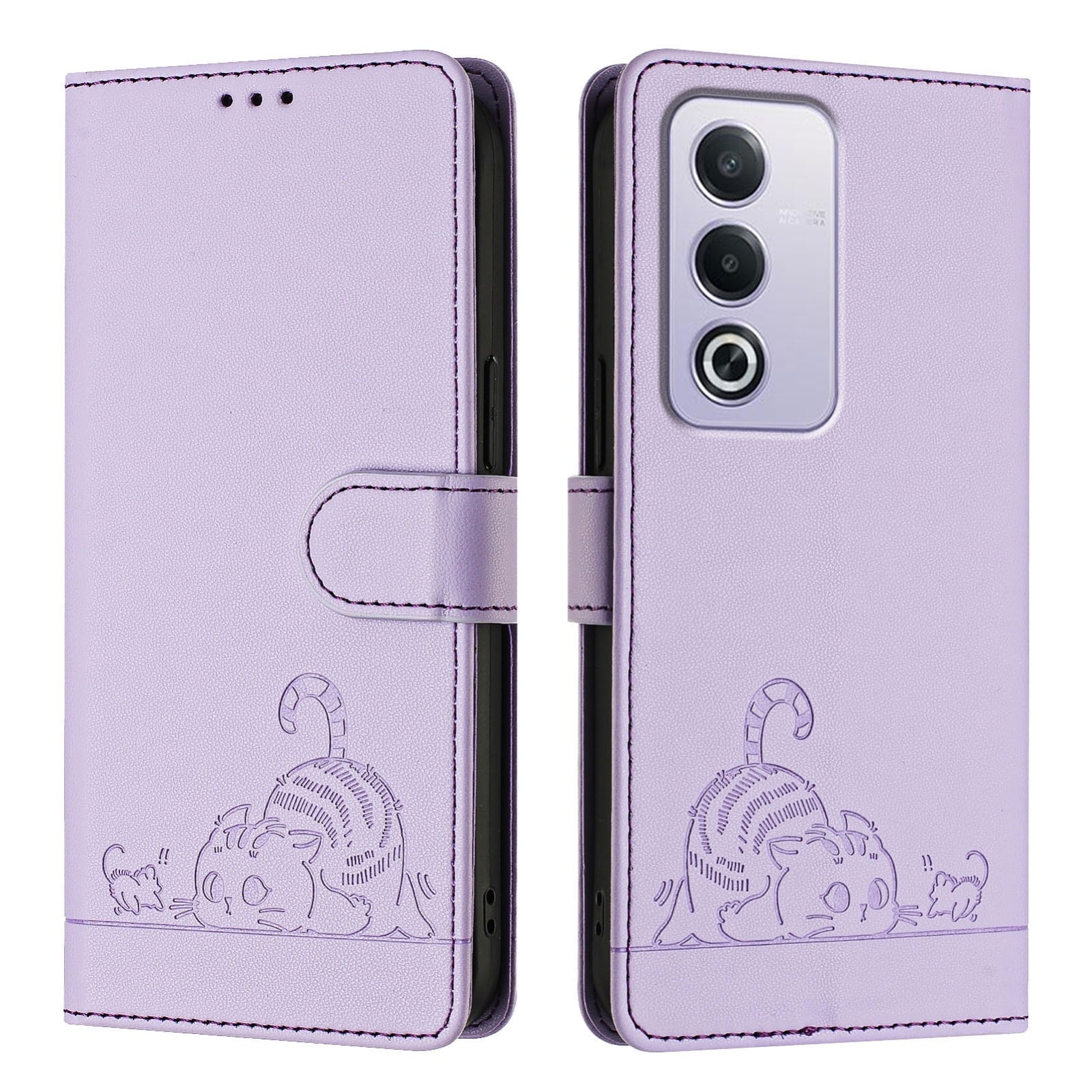 Explore the perfect blend of style and functionality with our OPPO A3 Pro 5G Global Leather Phone Case. Featuring a charming cat and rat embossed pattern, this case offers multiple benefits: