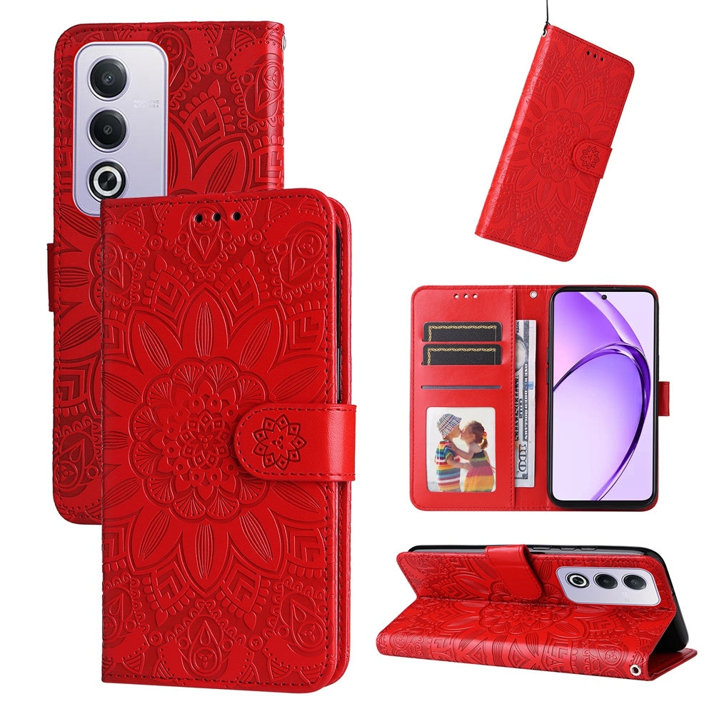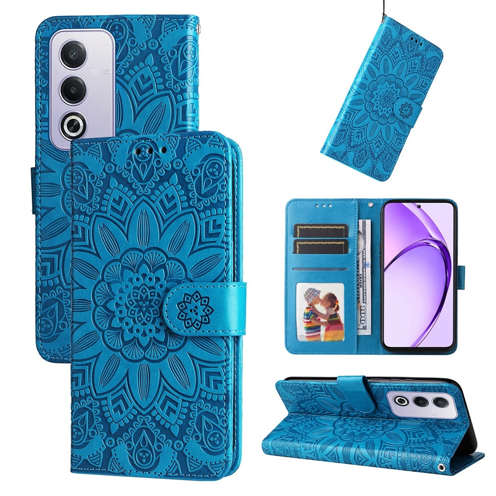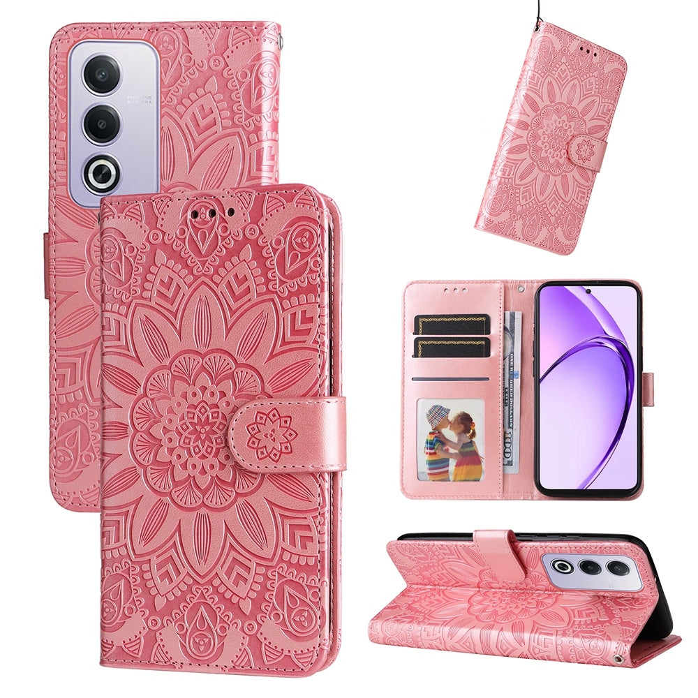 OPPO A3 Pro 5G Sunflower Embossed Leather Wallet Phone Case with Kickstand and Card Holder