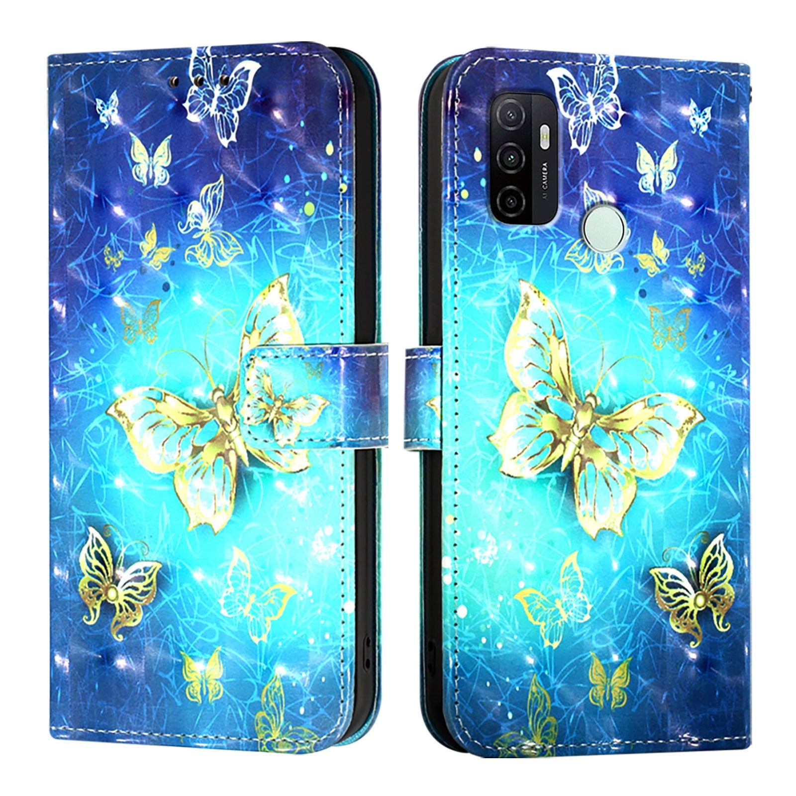 OPPO A33 2020 4G Leather Flip Phone Case with 3D Painted Design, Card Holder, Wallet & Stand Function - Durable Protection & Easy Access