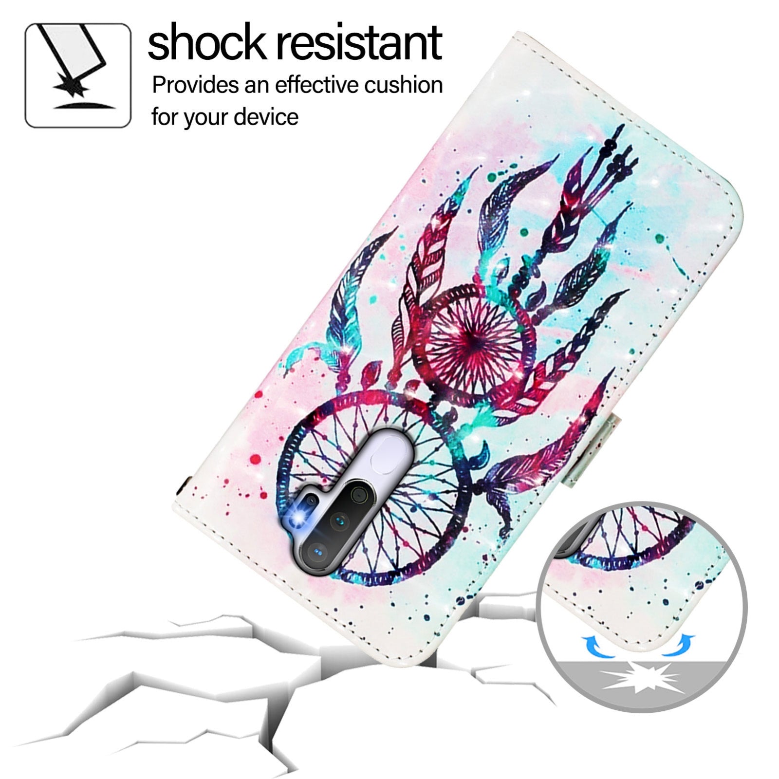 Give your OPPO A5 2020 4G a stylish upgrade with this beautifully designed leather flip phone case featuring eye-catching 3D artwork. Crafted from premium-quality PU leather combined with a robust TPU interior, this case ensures your device stays protected against everyday scratches, dirt, wear, and tear.