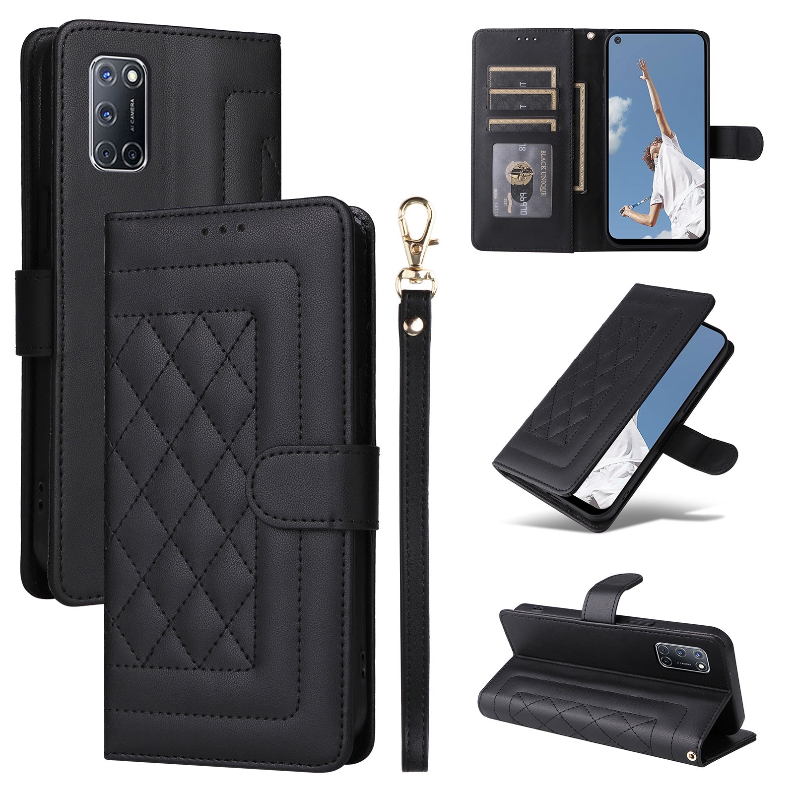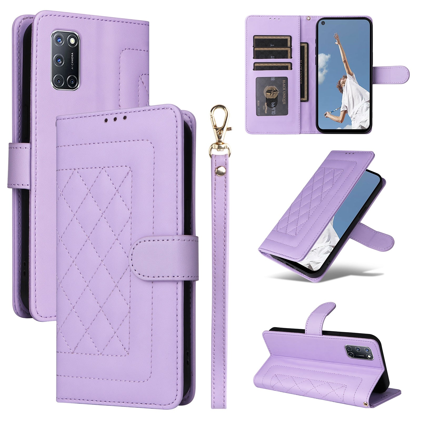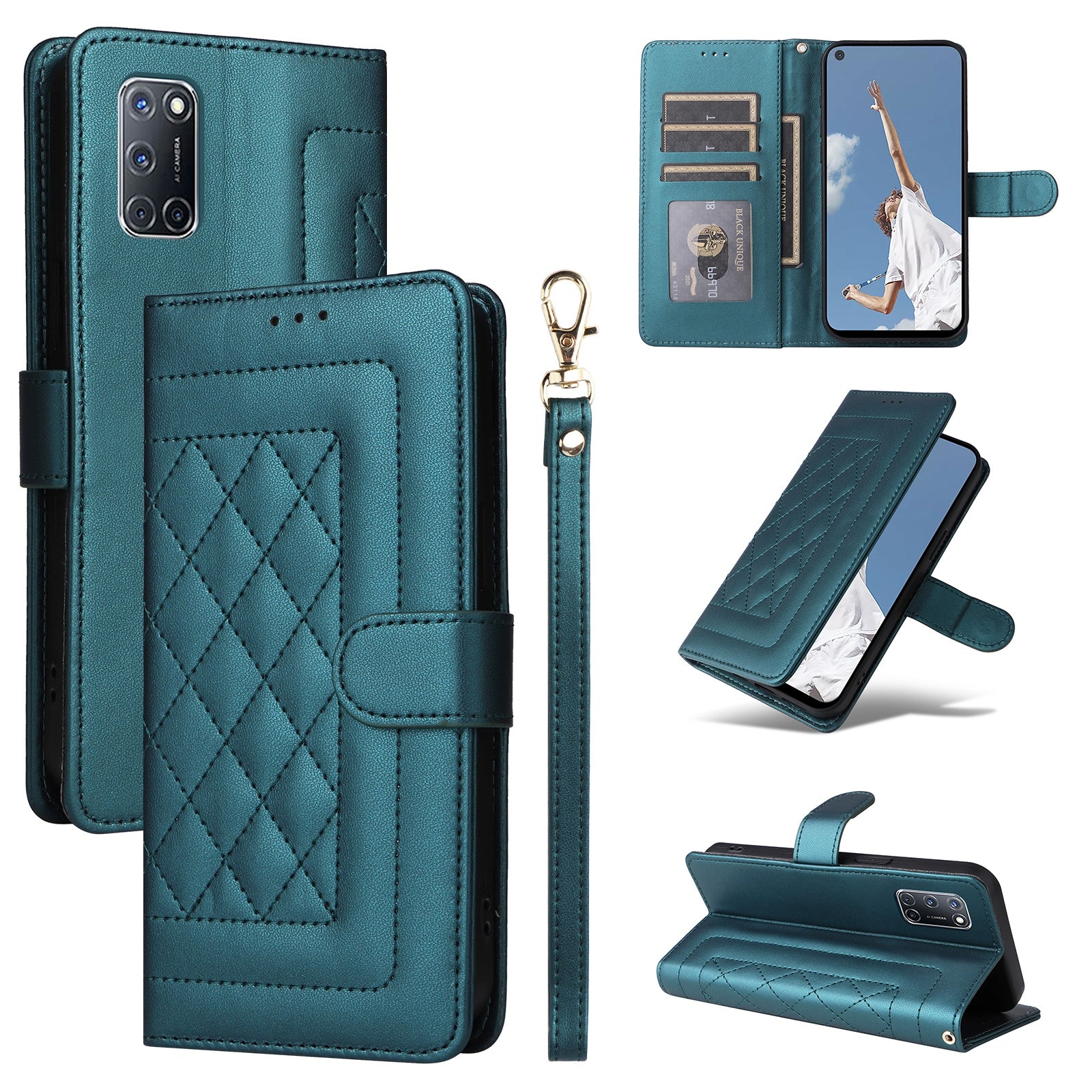 OPPO A52 / A72 / A92 Diamond Lattice Leather Flip Phone Case - Durable and Convenient Holder with Precision Cutouts