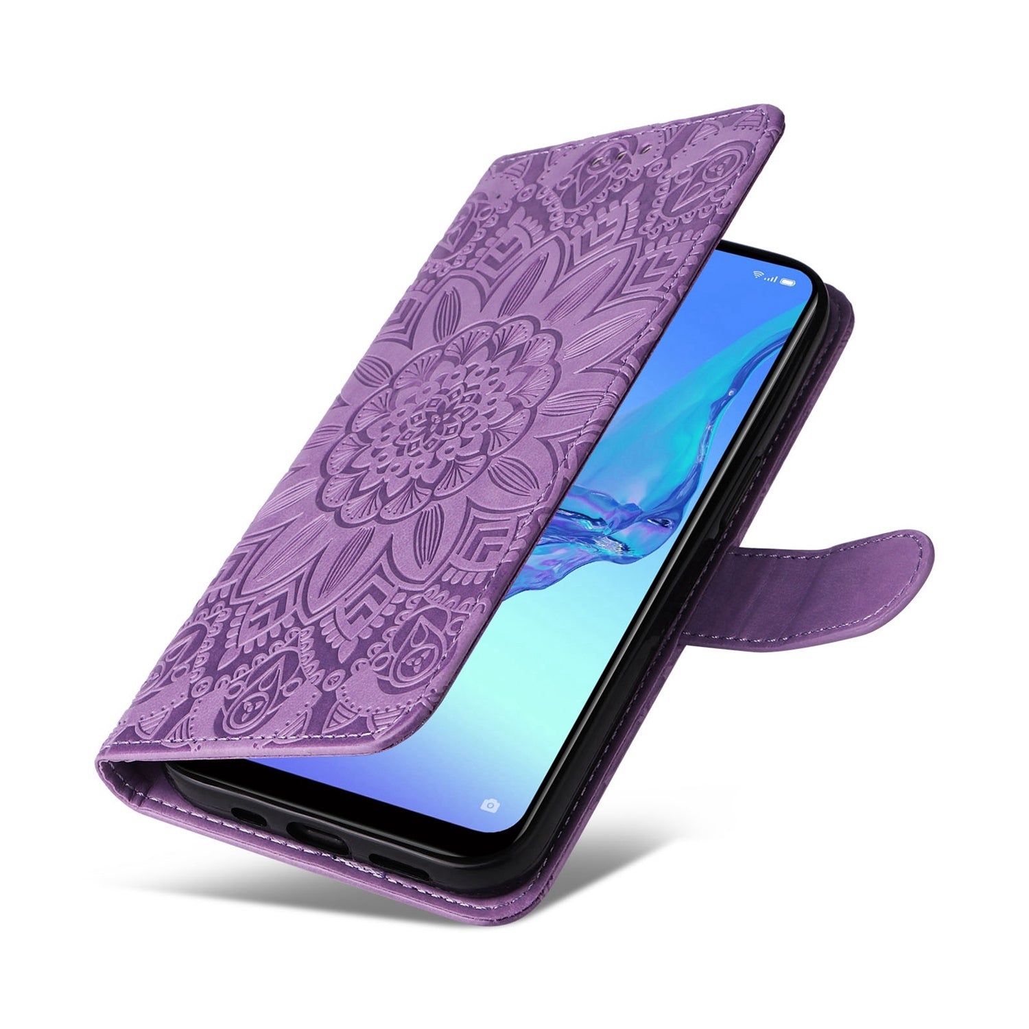 OPPO A53 Sunflower Embossed Leather Wallet Phone Case with Kickstand and Card Holder