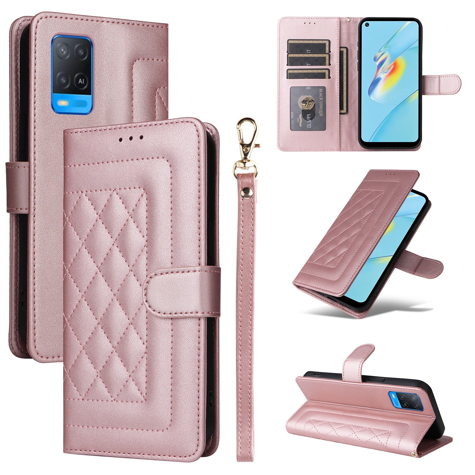 OPPO A54 4G / A16 Diamond Lattice Leather Flip Phone Case - Durable and Convenient Holder with Precision Cutouts