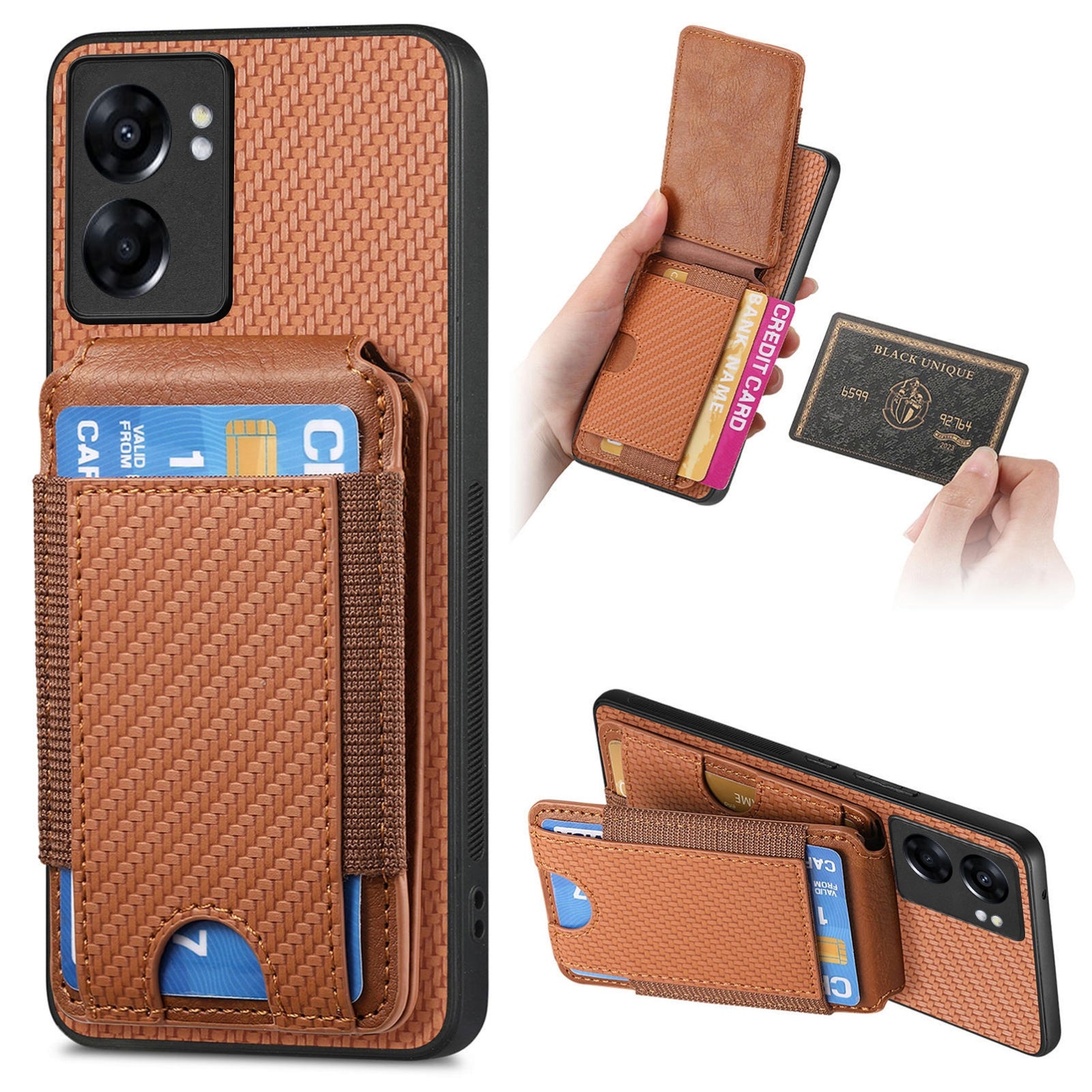 OPPO A57 5G Vertical Flip Wallet Stand Phone Case with Carbon Fibre Pattern
