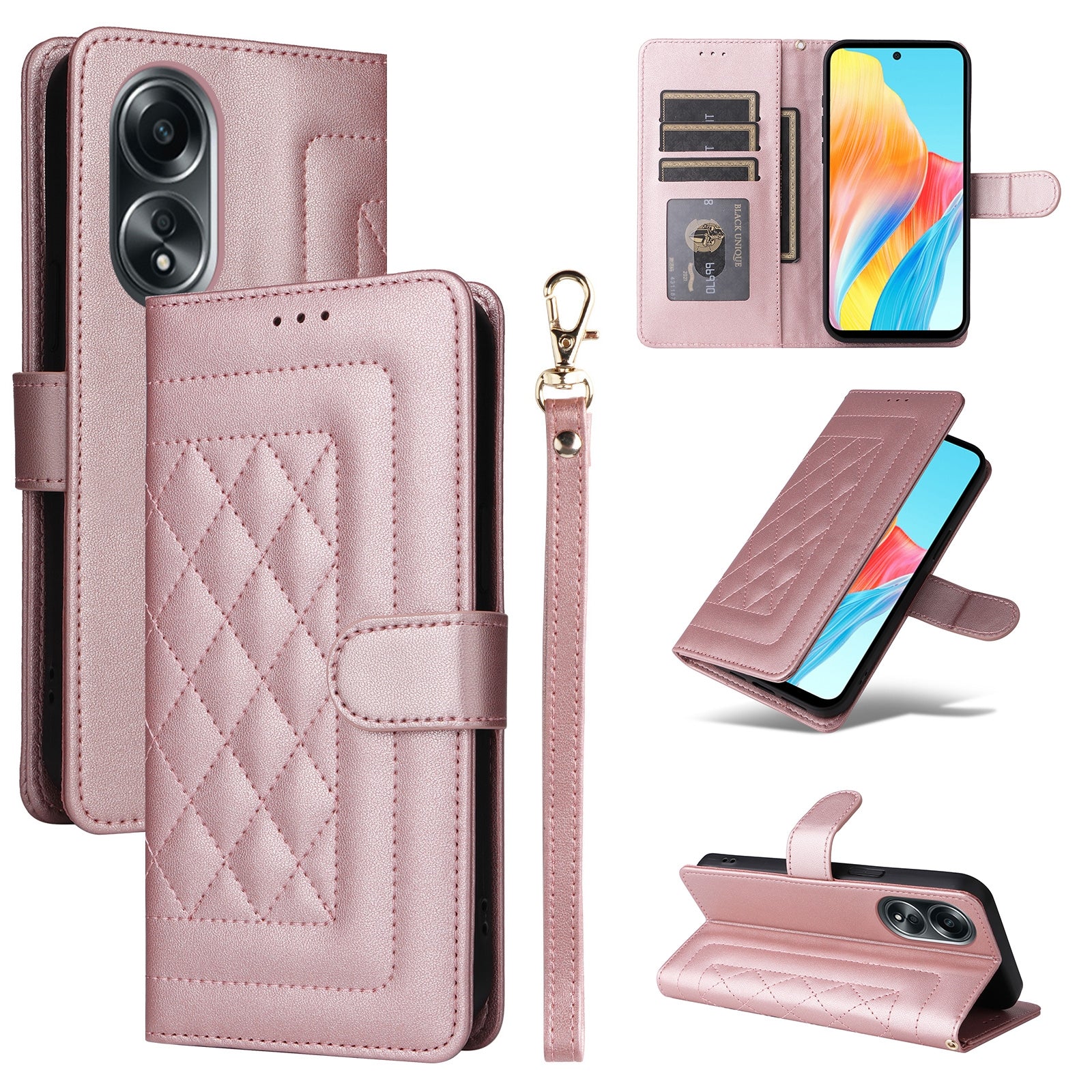 OPPO A58 4G Diamond Lattice Leather Flip Phone Case - Durable and Convenient Holder with Precision Cutouts
