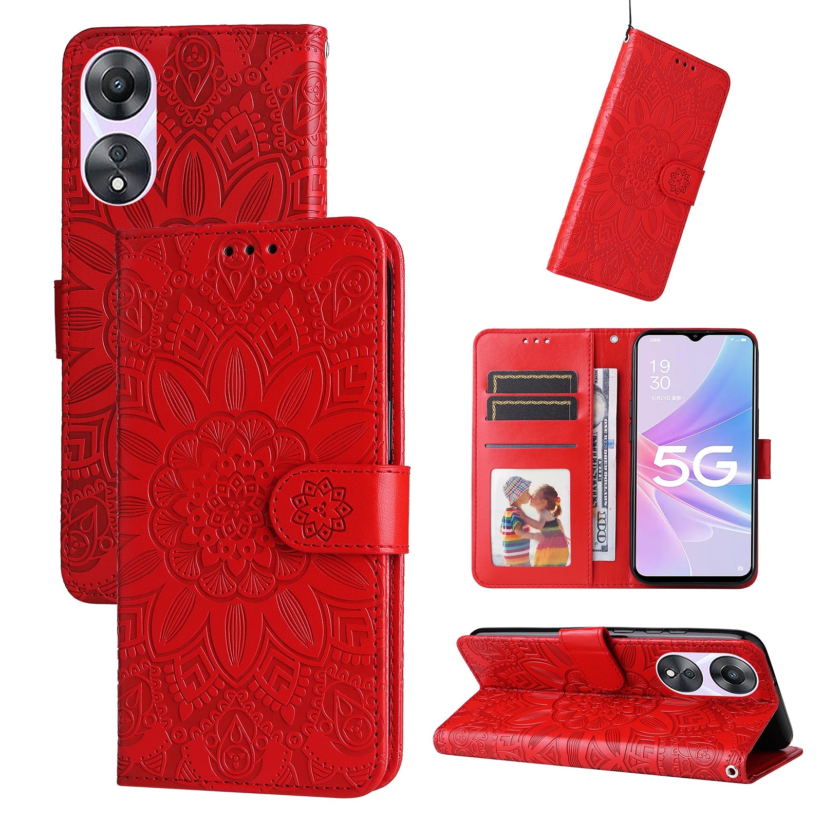 OPPO A58 5G Sunflower Embossed Leather Wallet Phone Case with Kickstand and Card Holder