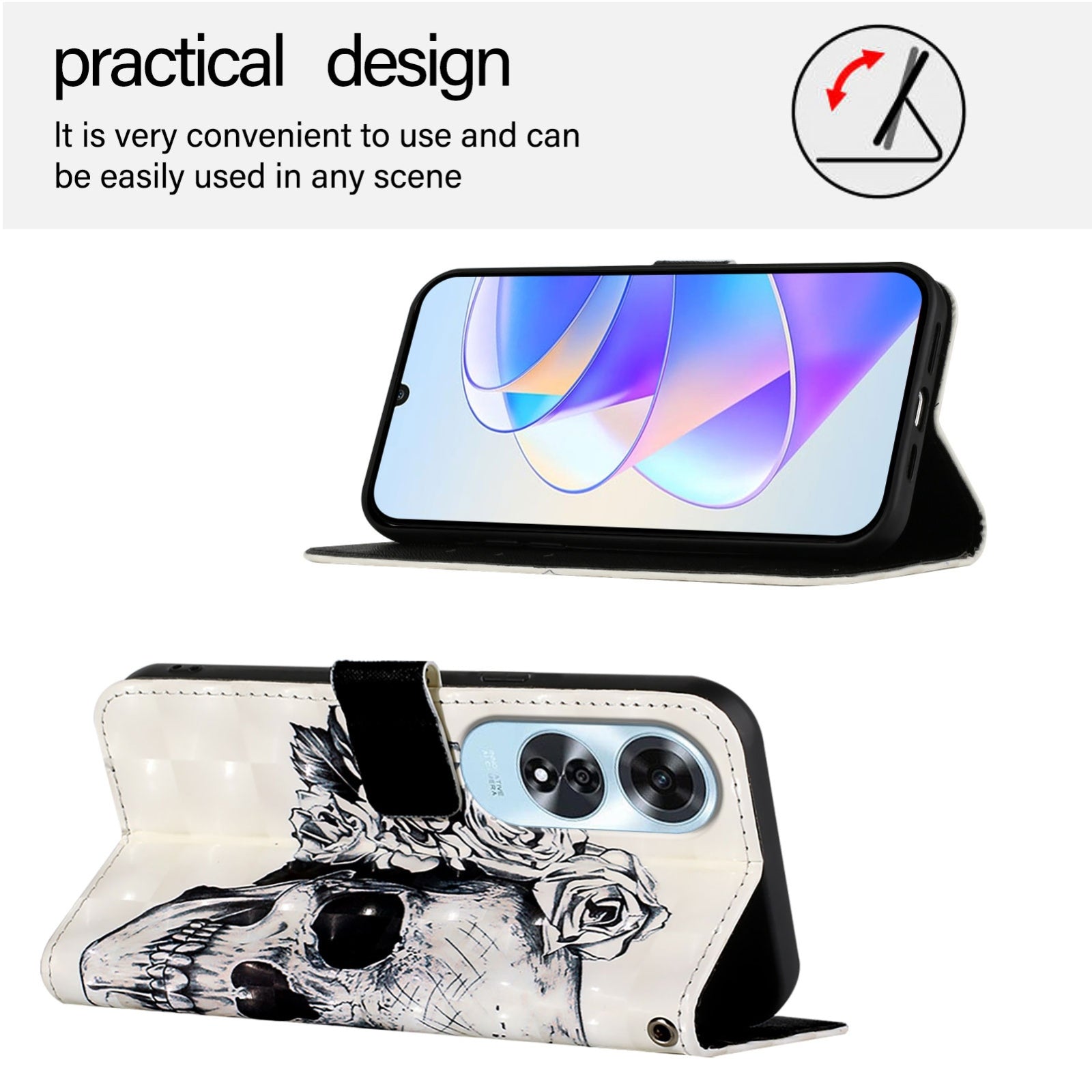 Give your OPPO A60 4G Global a stylish upgrade with this beautifully designed leather flip phone case featuring eye-catching 3D artwork. Crafted from premium-quality PU leather combined with a robust TPU interior, this case ensures your device stays protected against everyday scratches, dirt, wear, and tear.