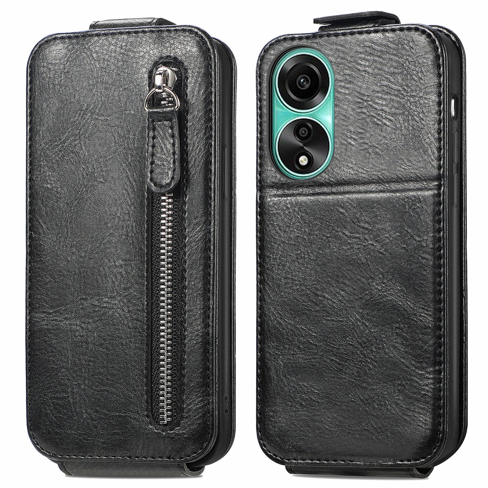 OPPO A78 4G Zipper Wallet Case - Vertical Flip Leather Phone Cover with Multiple Card Slots and Stand