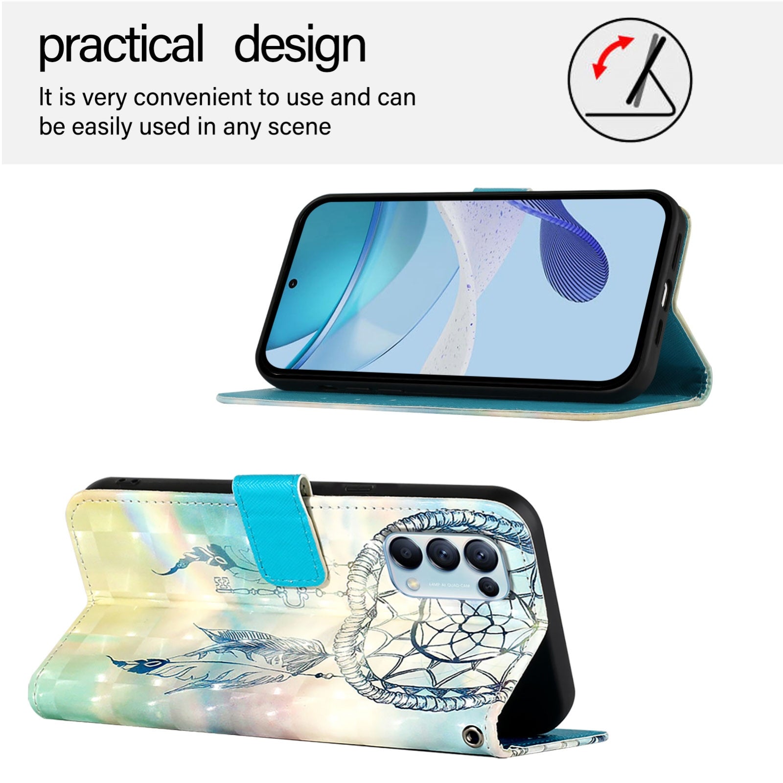 Give your OPPO Find X3 Lite a stylish upgrade with this beautifully designed leather flip phone case featuring eye-catching 3D artwork. Crafted from premium-quality PU leather combined with a robust TPU interior, this case ensures your device stays protected against everyday scratches, dirt, wear, and tear.
