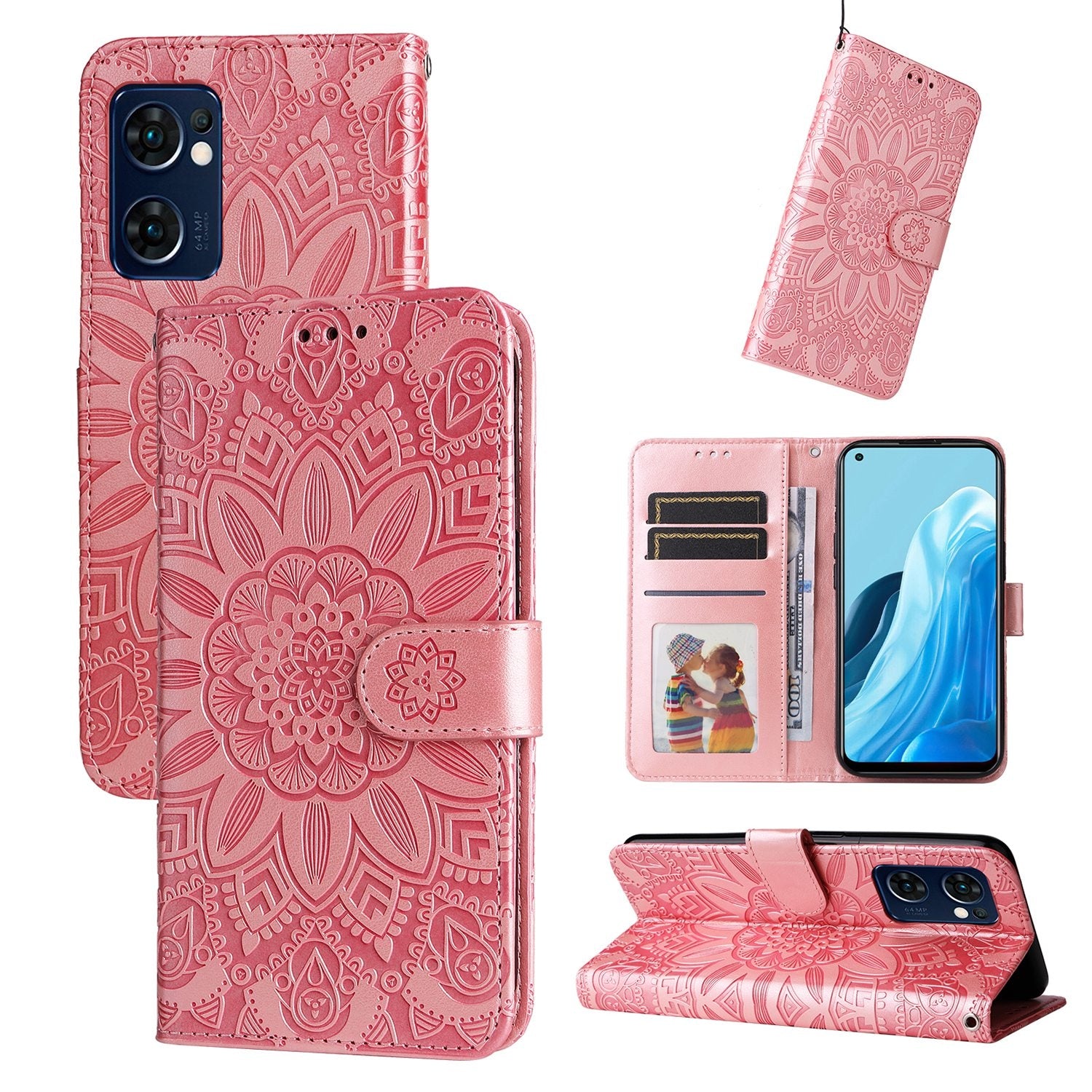 OPPO Find X5 Lite Sunflower Embossed Leather Wallet Phone Case with Kickstand and Card Holder