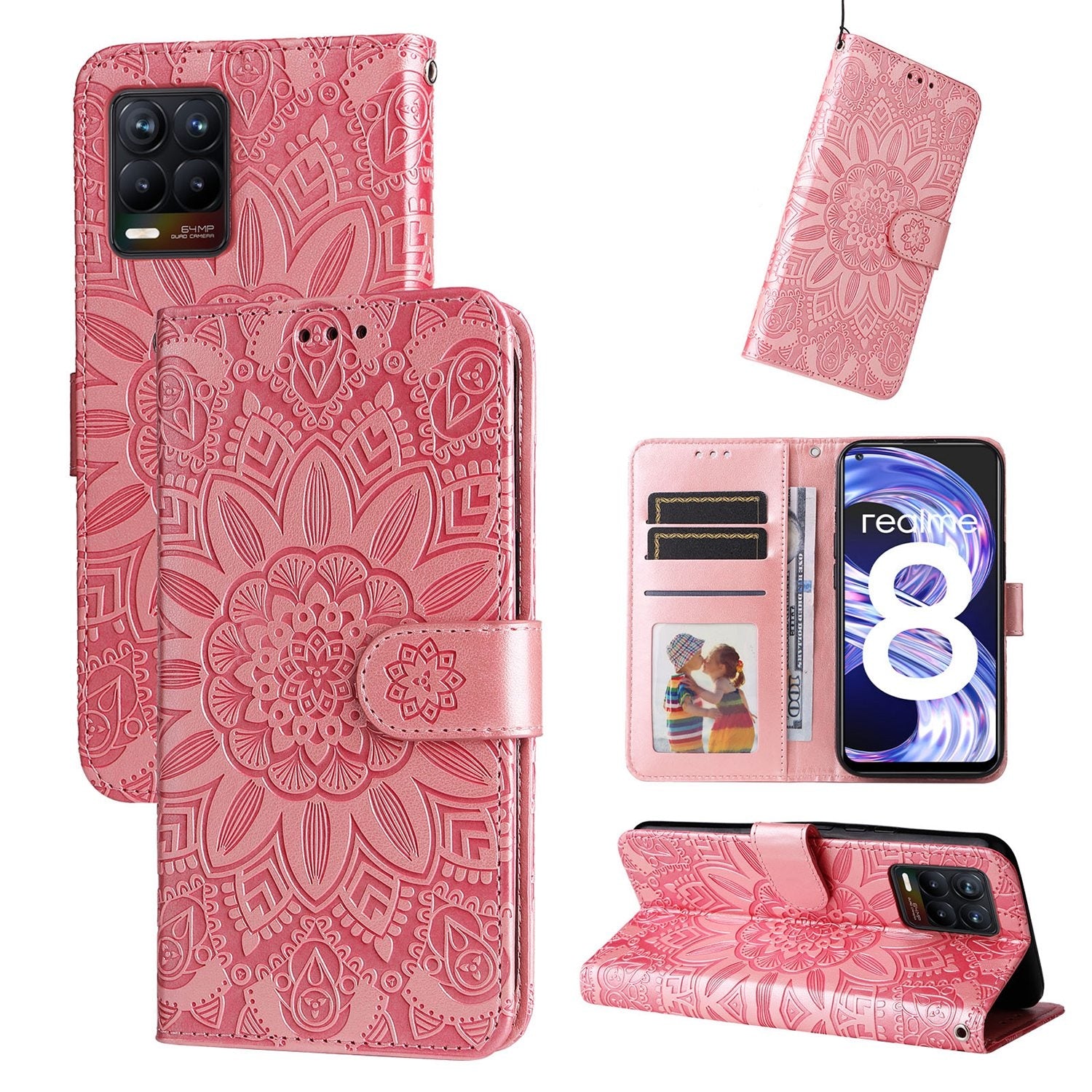 OPPO Find X5 Pro Sunflower Embossed Leather Wallet Phone Case with Kickstand and Card Holder