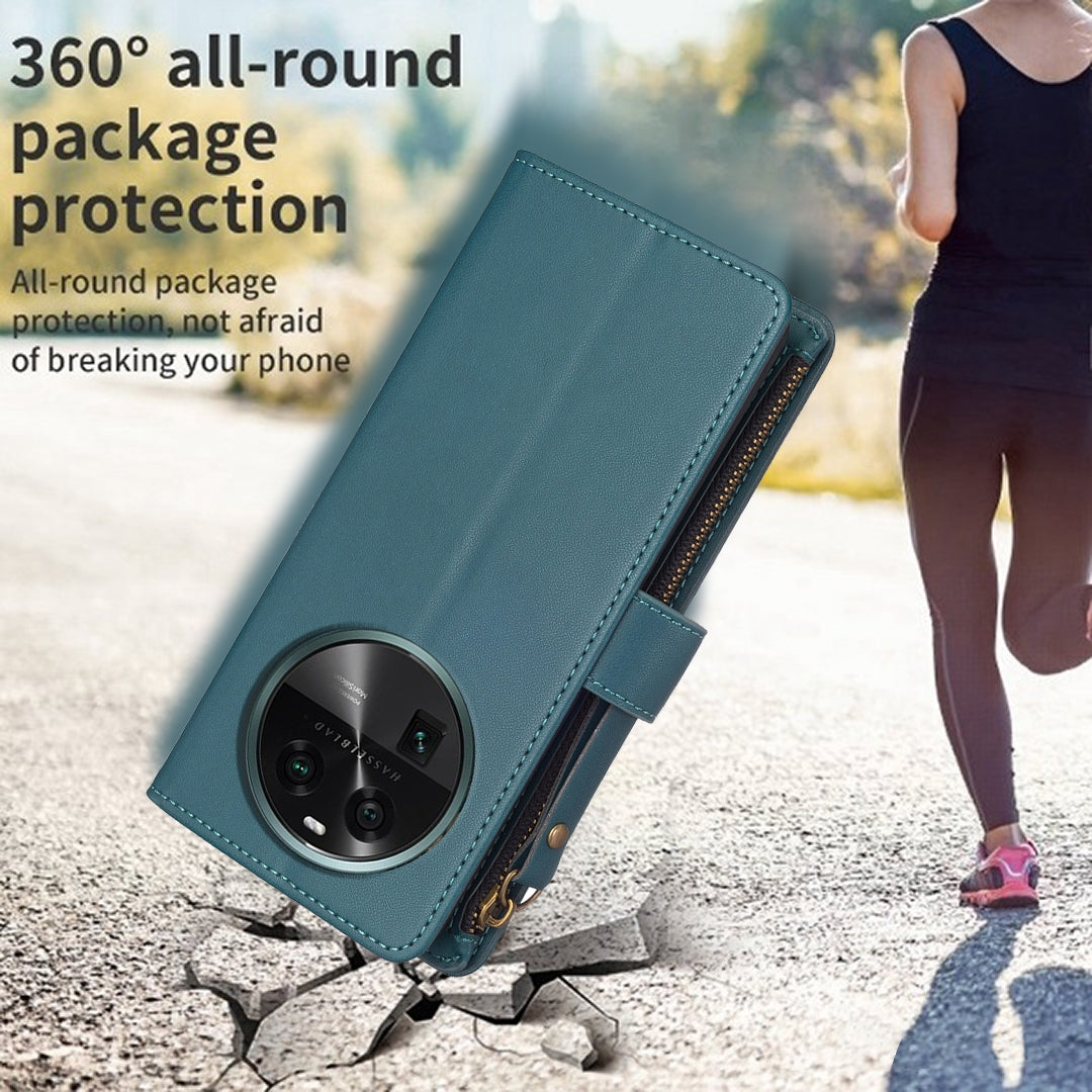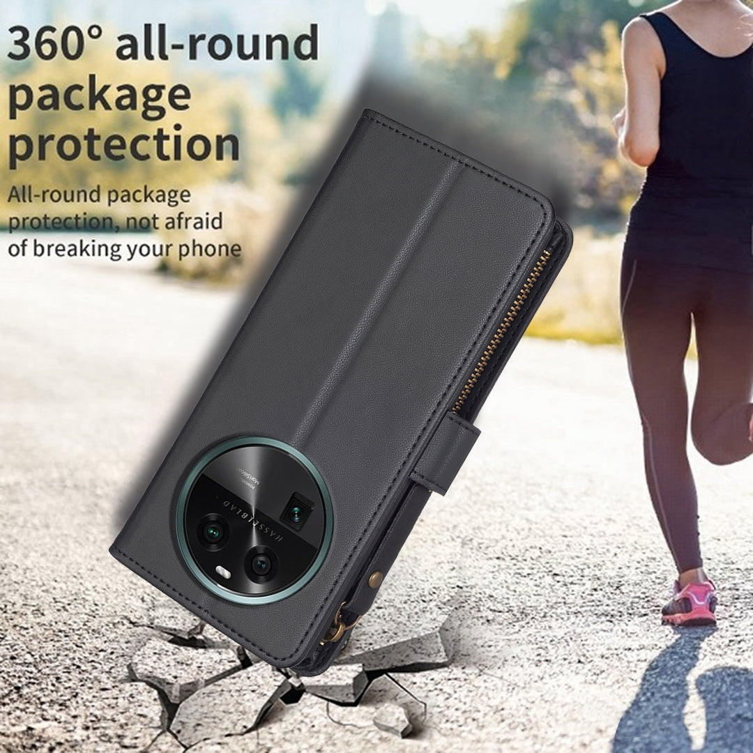 OPPO Find X6 Leather Flip Phone Case with Zipper Wallet and 9 Card Slots, Durable PU + TPU Material