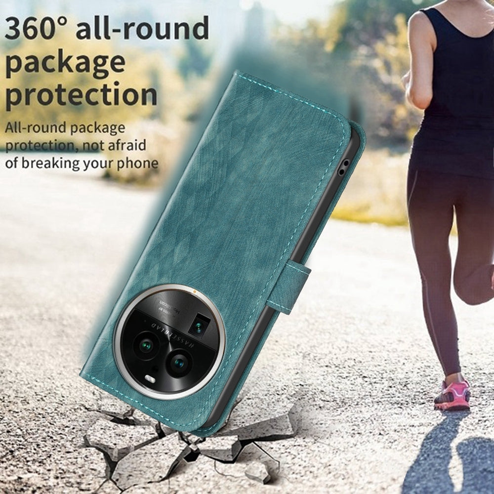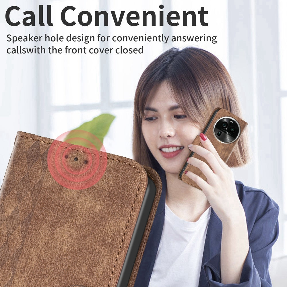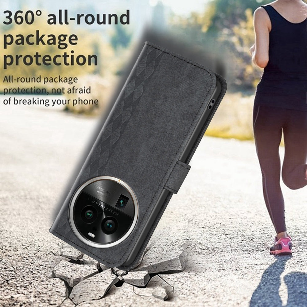 OPPO Find X6 Pro Case - Embossed Plaid Leather Wallet Cover with Card Slots, Kickstand, and 360 degree Protection