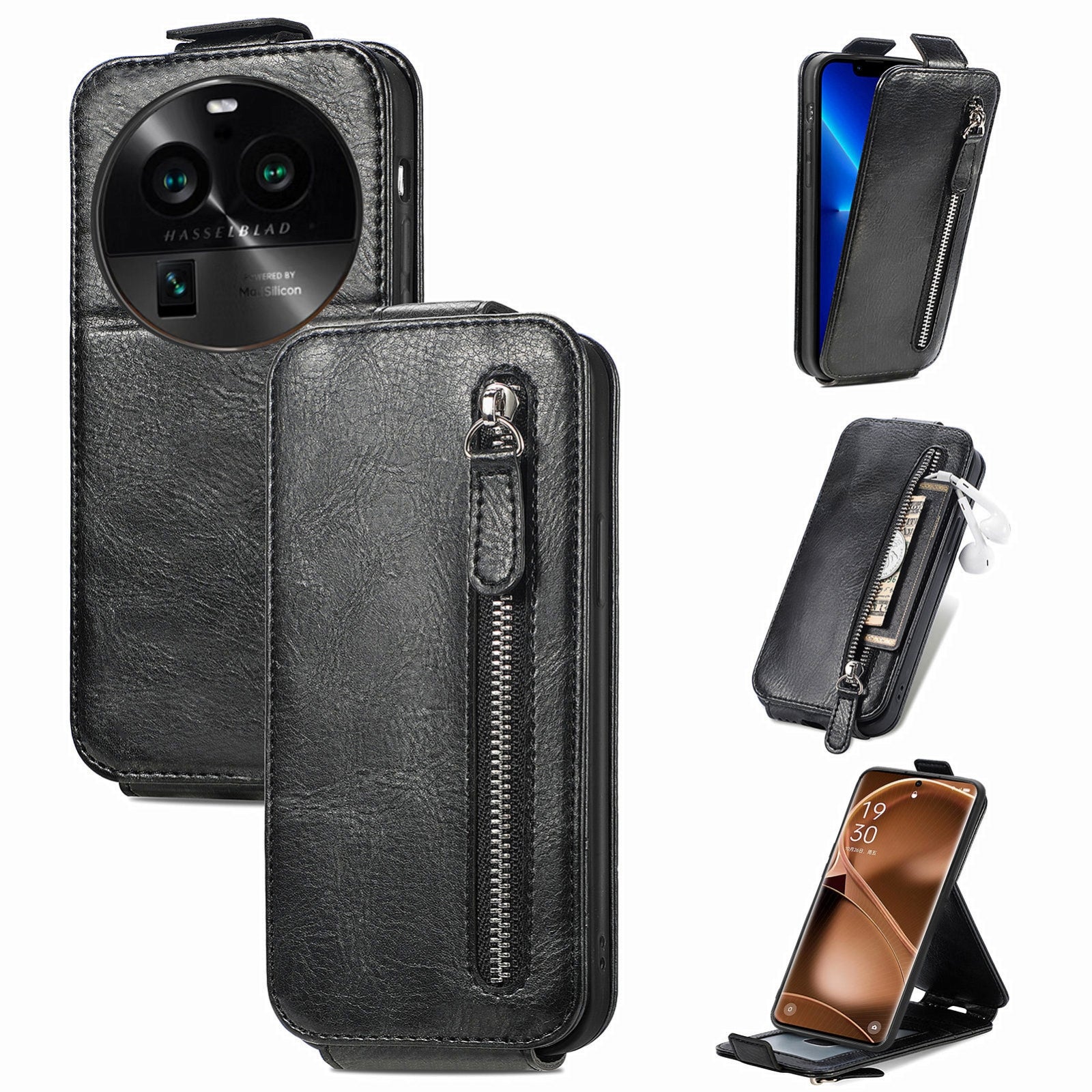 OPPO Find X6 Pro Zipper Wallet Case - Vertical Flip Leather Phone Cover with Multiple Card Slots and Stand