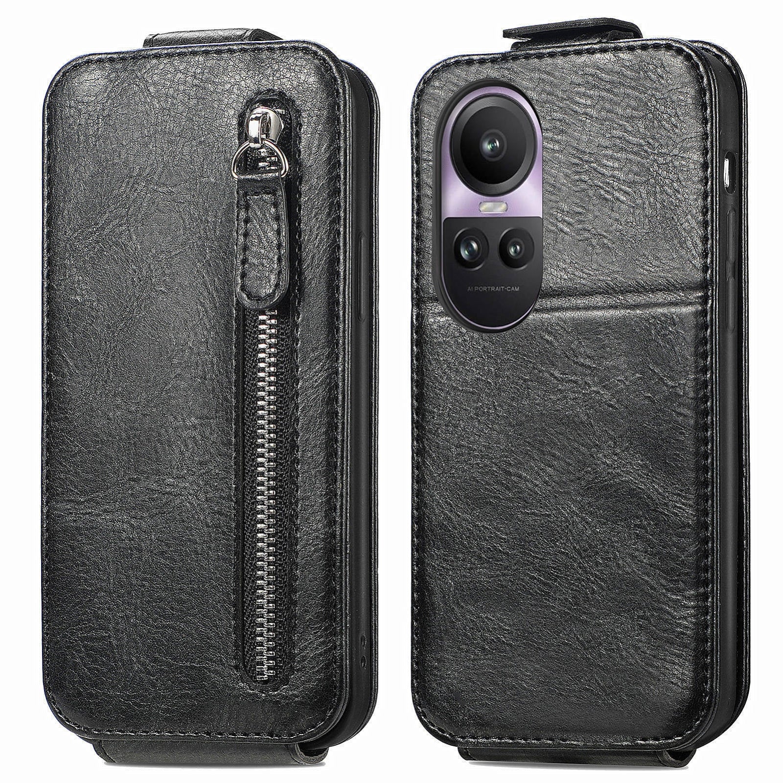 OPPO Reno 10 Pro 5G Zipper Wallet Case - Vertical Flip Leather Phone Cover with Multiple Card Slots and Stand