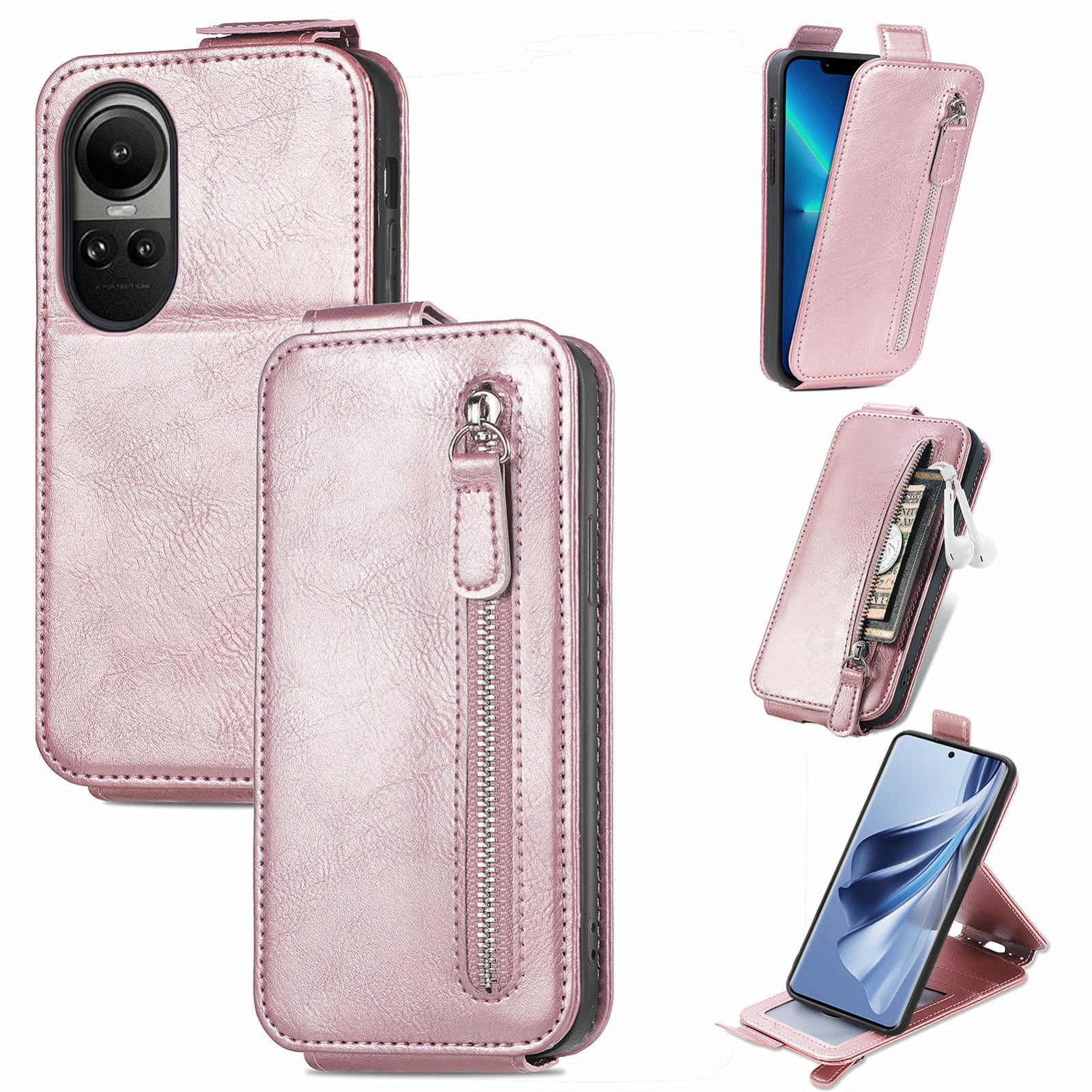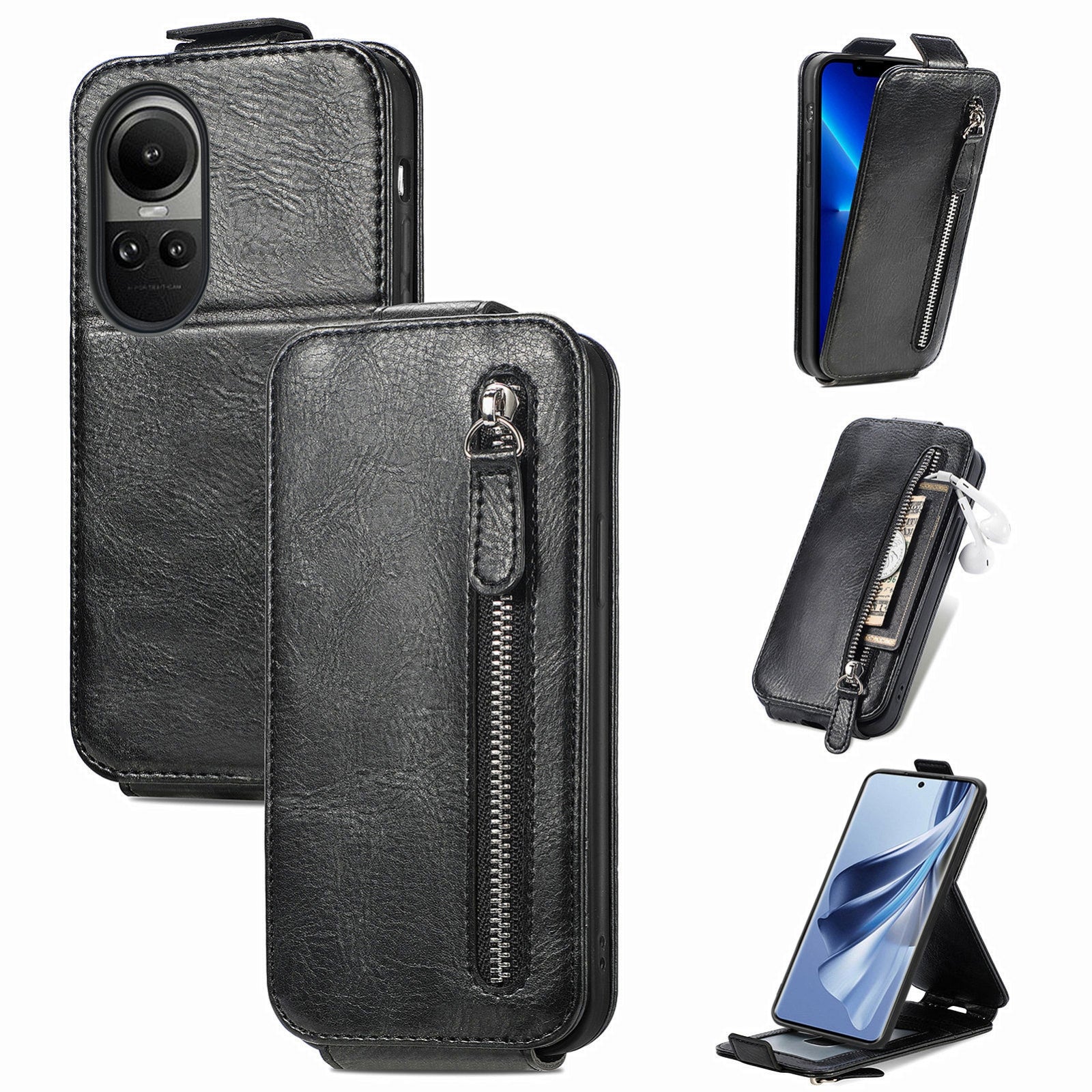OPPO Reno 10 Pro Global Zipper Wallet Case - Vertical Flip Leather Phone Cover with Multiple Card Slots and Stand