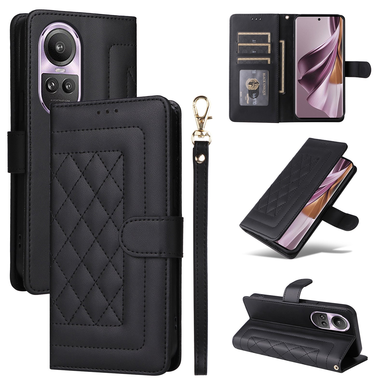 OPPO Reno10 5G / Reno10 Pro 5G Diamond Lattice Leather Flip Phone Case - Durable and Convenient Holder with Precision Cutouts