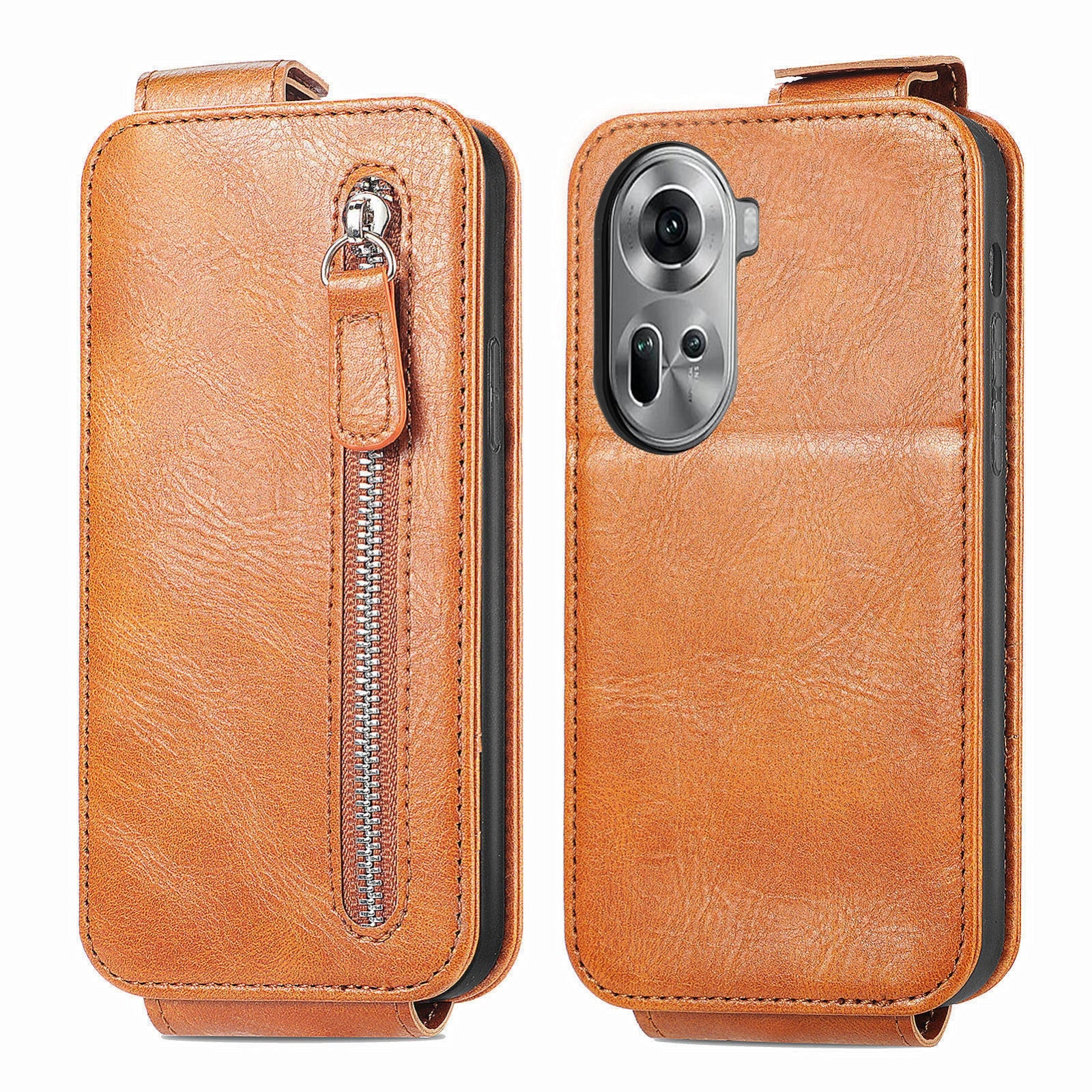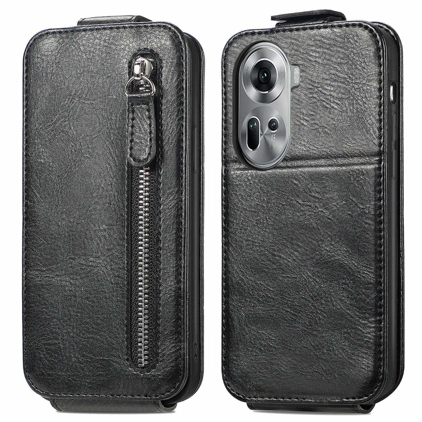 OPPO Reno11 EU Zipper Wallet Case - Vertical Flip Leather Phone Cover with Multiple Card Slots and Stand
