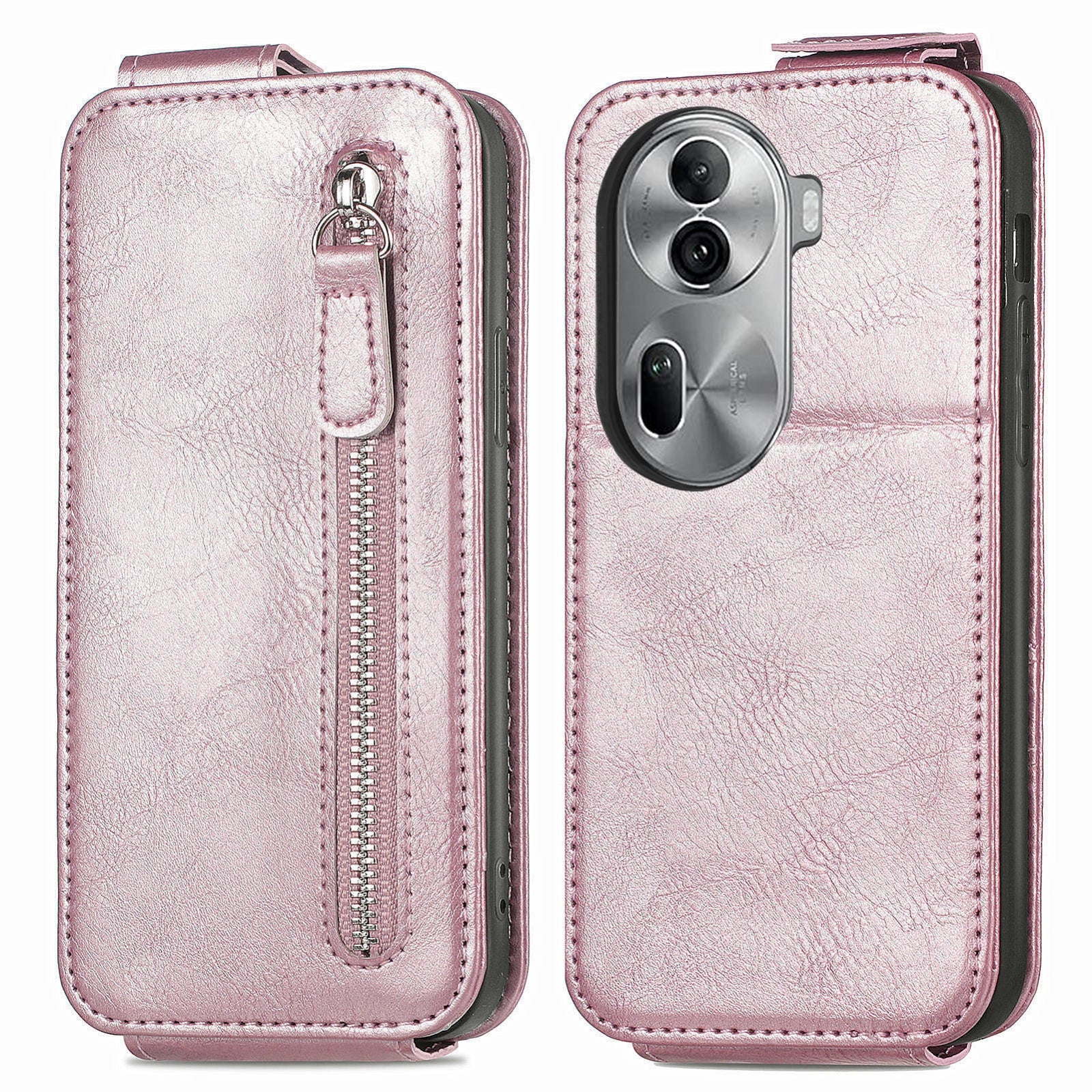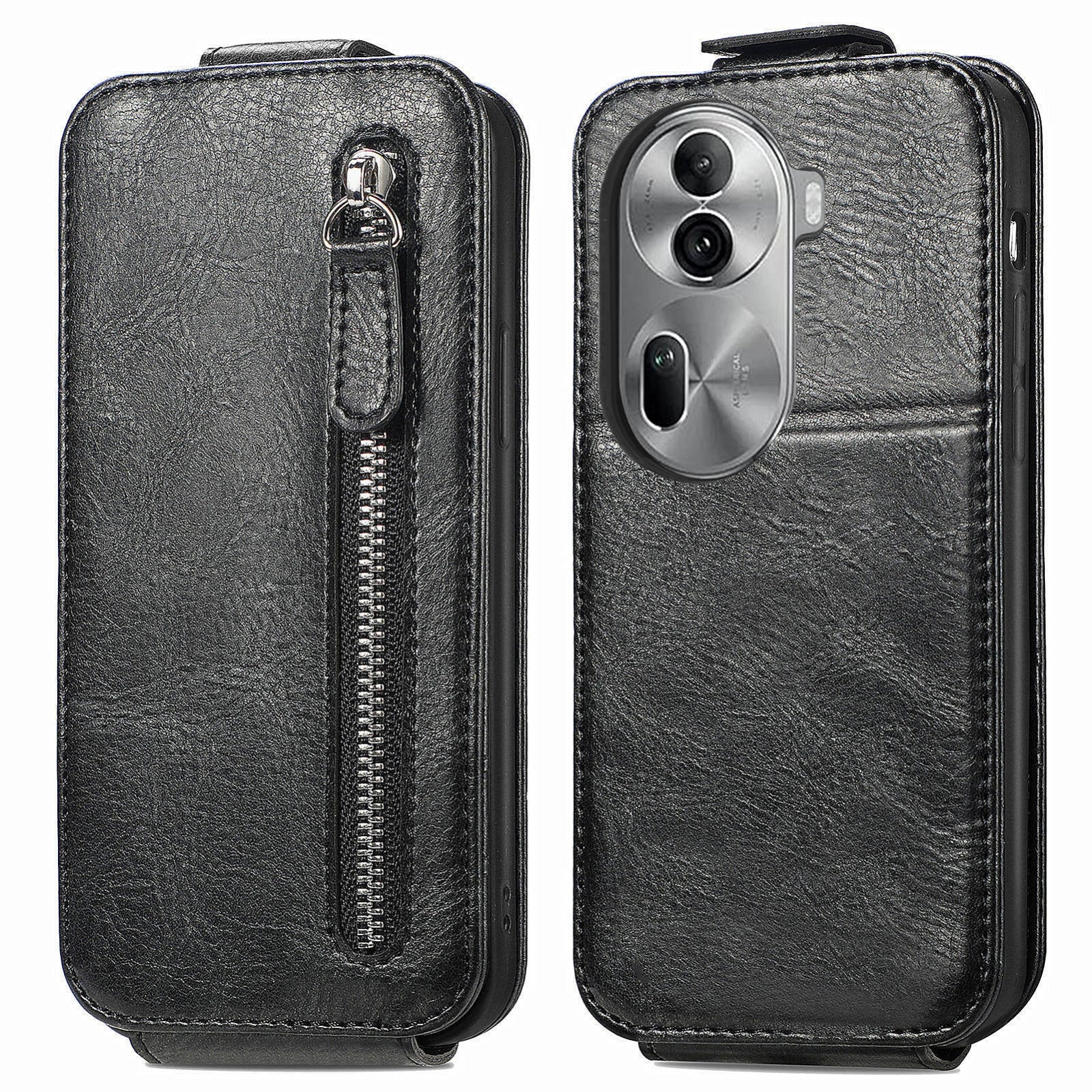 OPPO Reno11 Pro EU Zipper Wallet Case - Vertical Flip Leather Phone Cover with Multiple Card Slots and Stand