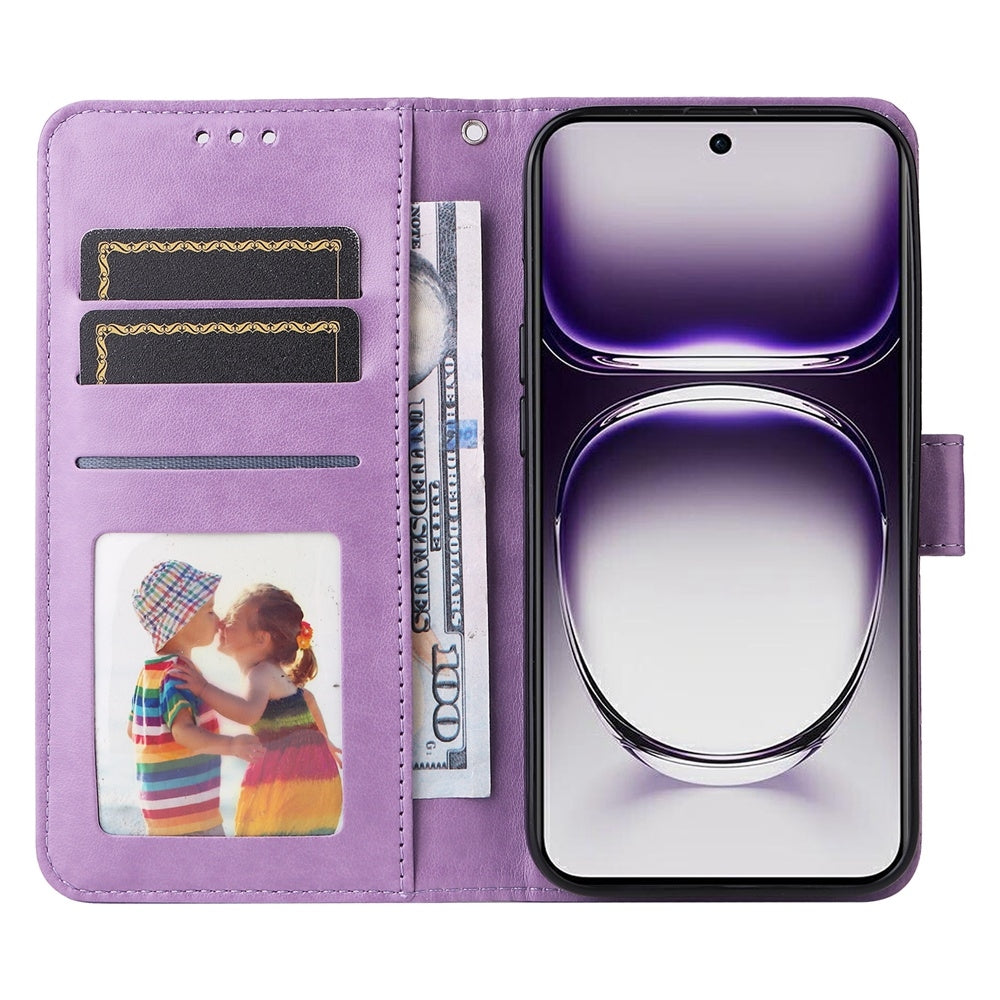 OPPO Reno12 5G Global Sunflower Embossed Leather Wallet Phone Case with Kickstand and Card Holder