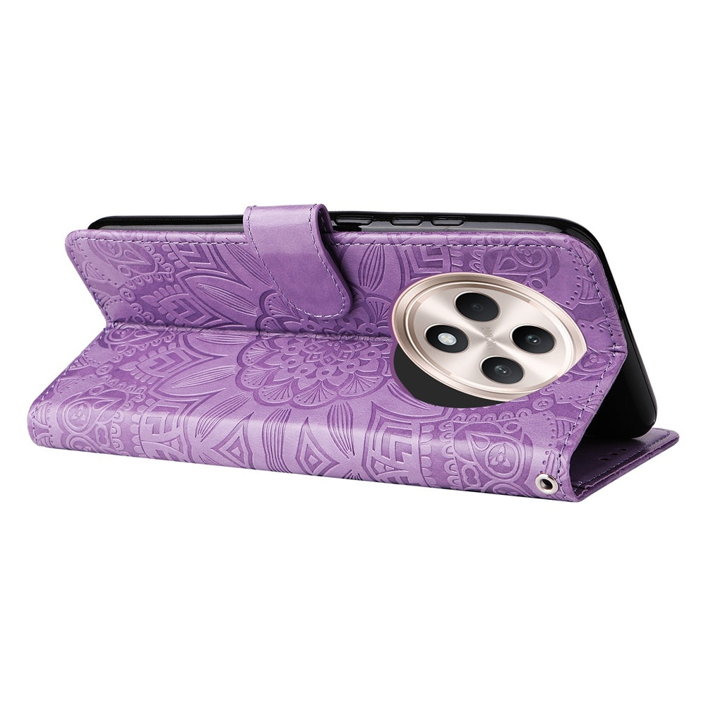 OPPO Reno12 F 5G Global Sunflower Embossed Leather Wallet Phone Case with Kickstand and Card Holder