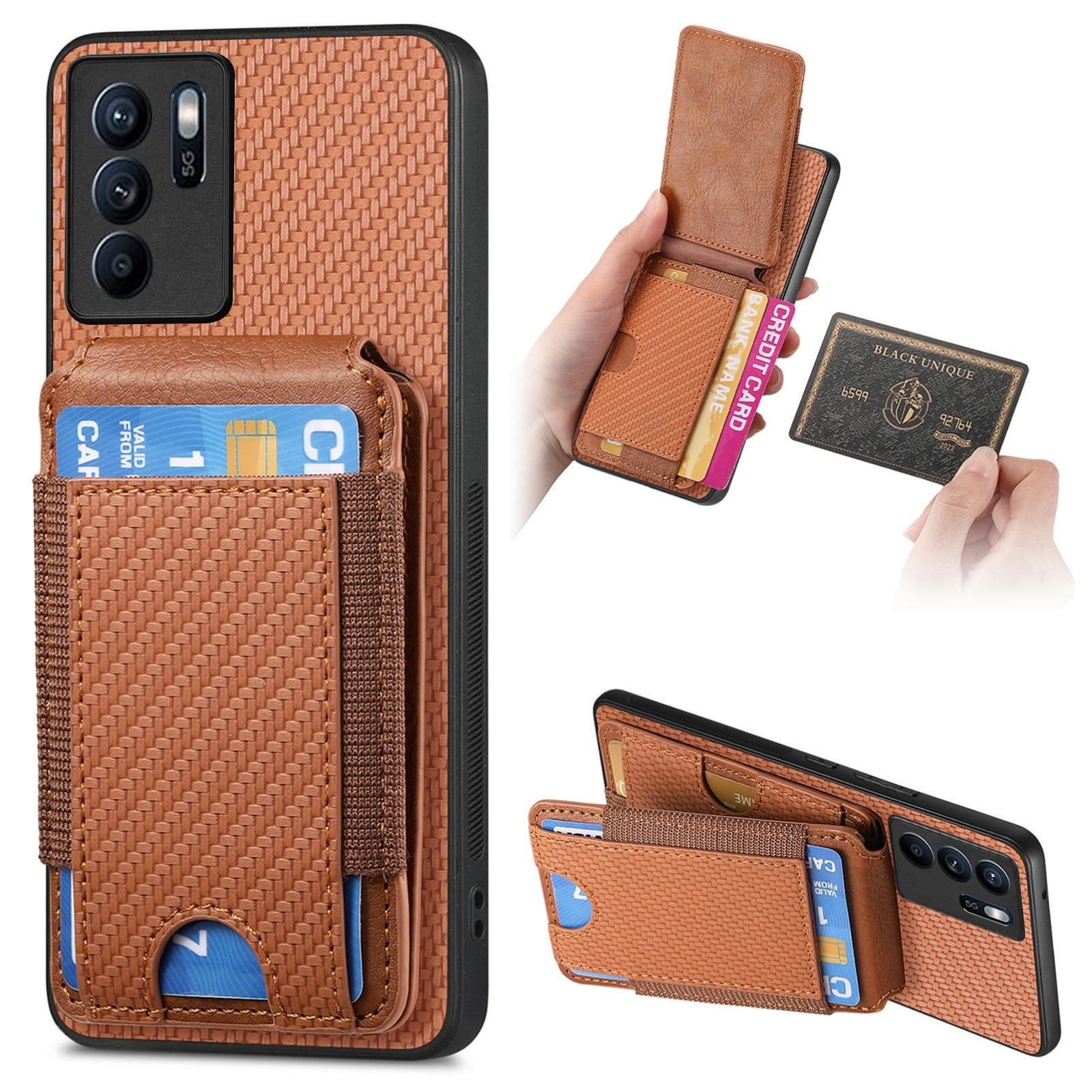 OPPO Reno6 Z Vertical Flip Wallet Stand Phone Case with Carbon Fibre Pattern