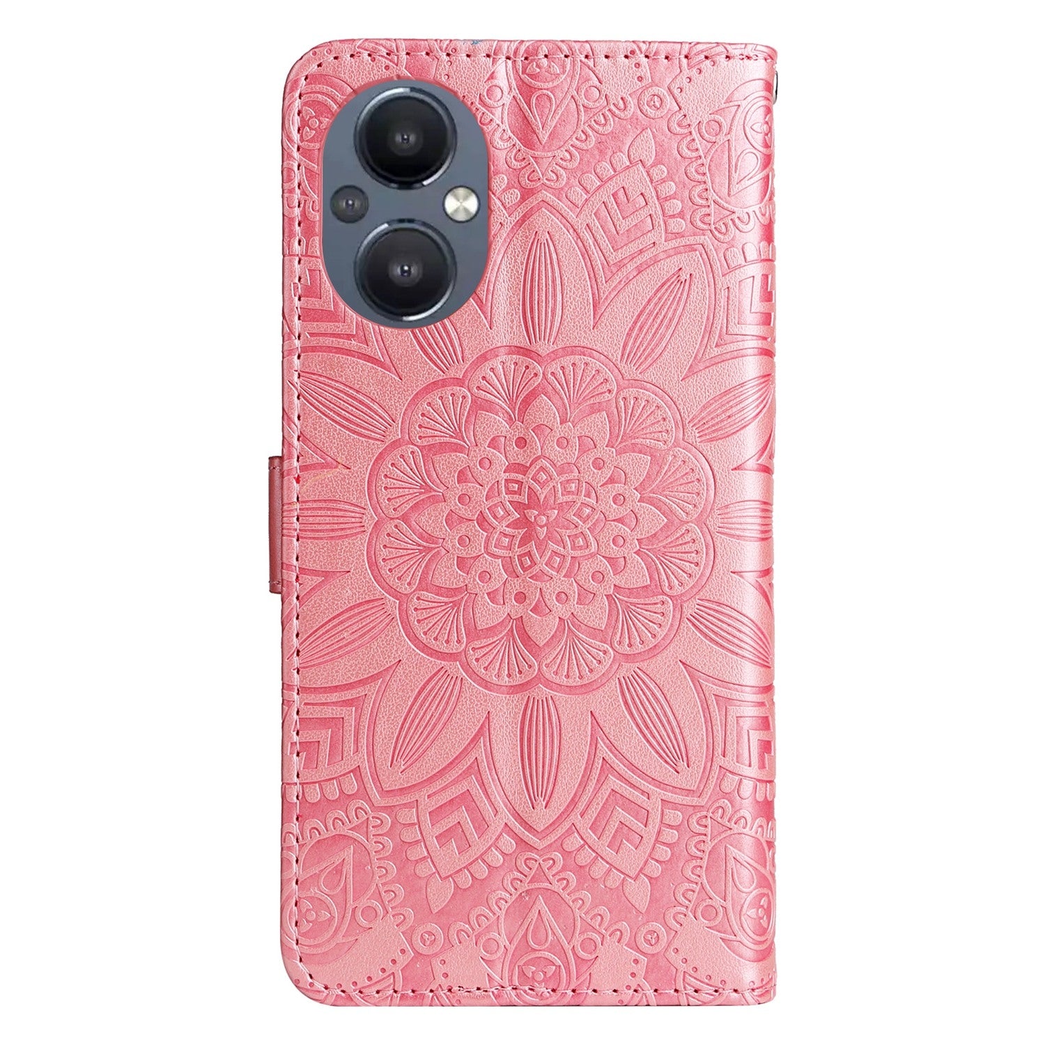 OPPO Reno7 Z Sunflower Embossed Leather Wallet Phone Case with Kickstand and Card Holder