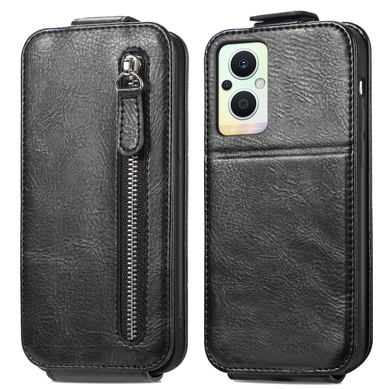 OPPO Reno8 Lite Zipper Wallet Case - Vertical Flip Leather Phone Cover with Multiple Card Slots and Stand
