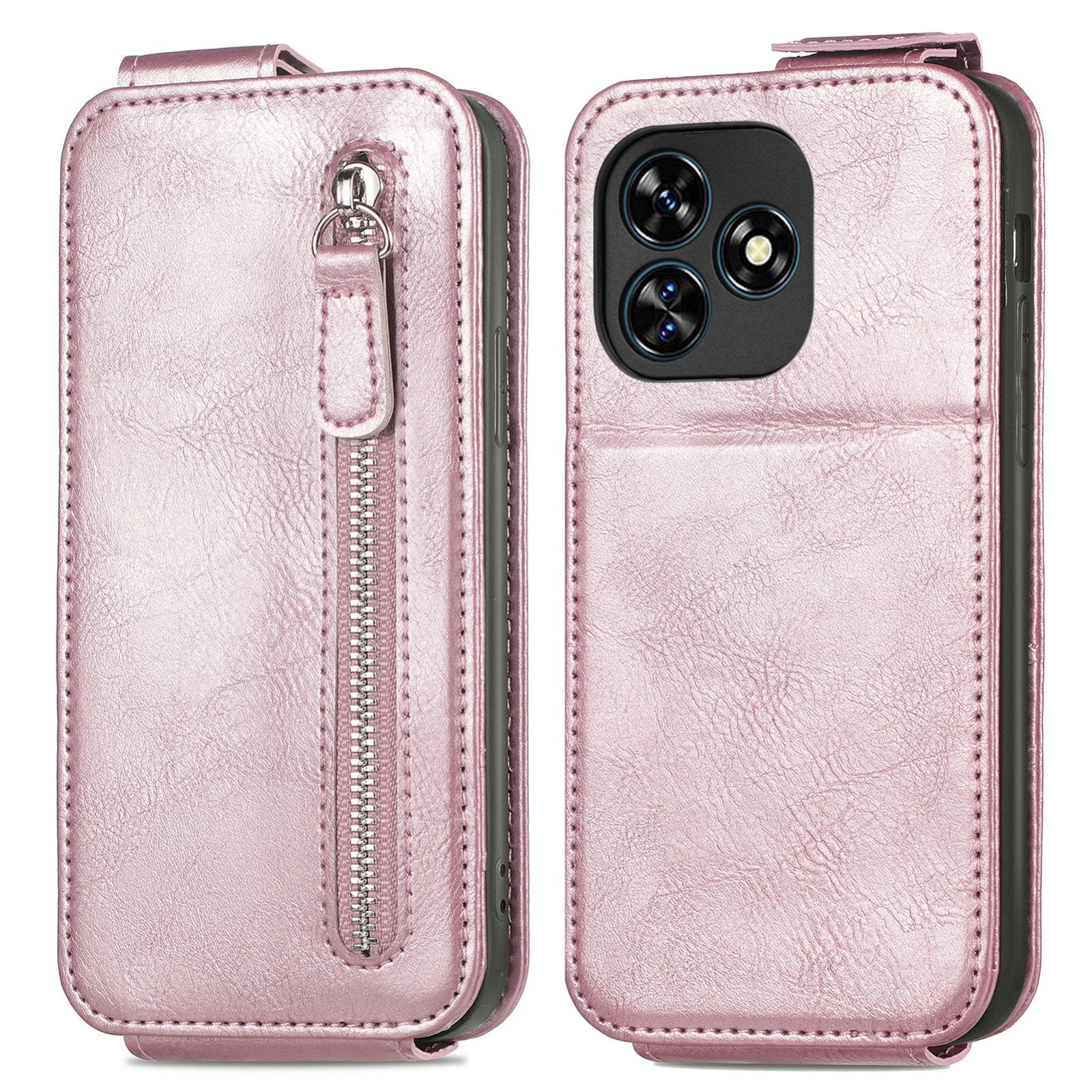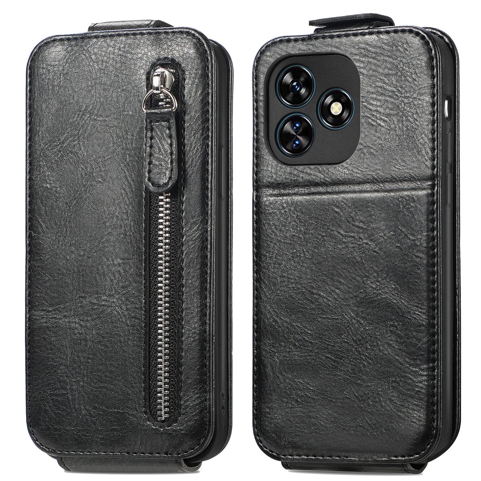 Oukitel C51 Zipper Wallet Case - Vertical Flip Leather Phone Cover with Multiple Card Slots and Stand