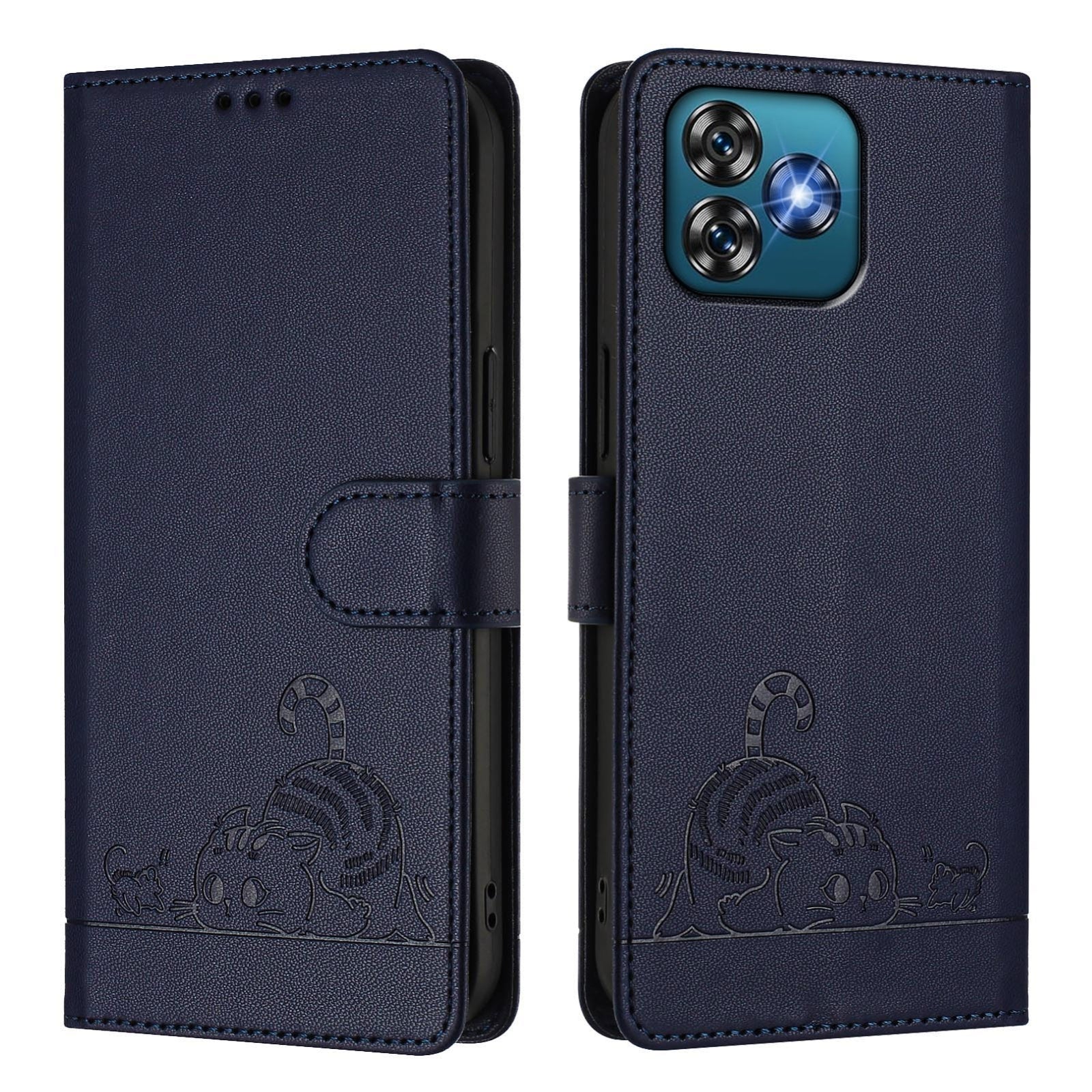 Oukitel C53 Cat and Rat Embossed Pattern, RFID Leather Phone Case with Lanyard, Kickstand, and Wallet Features