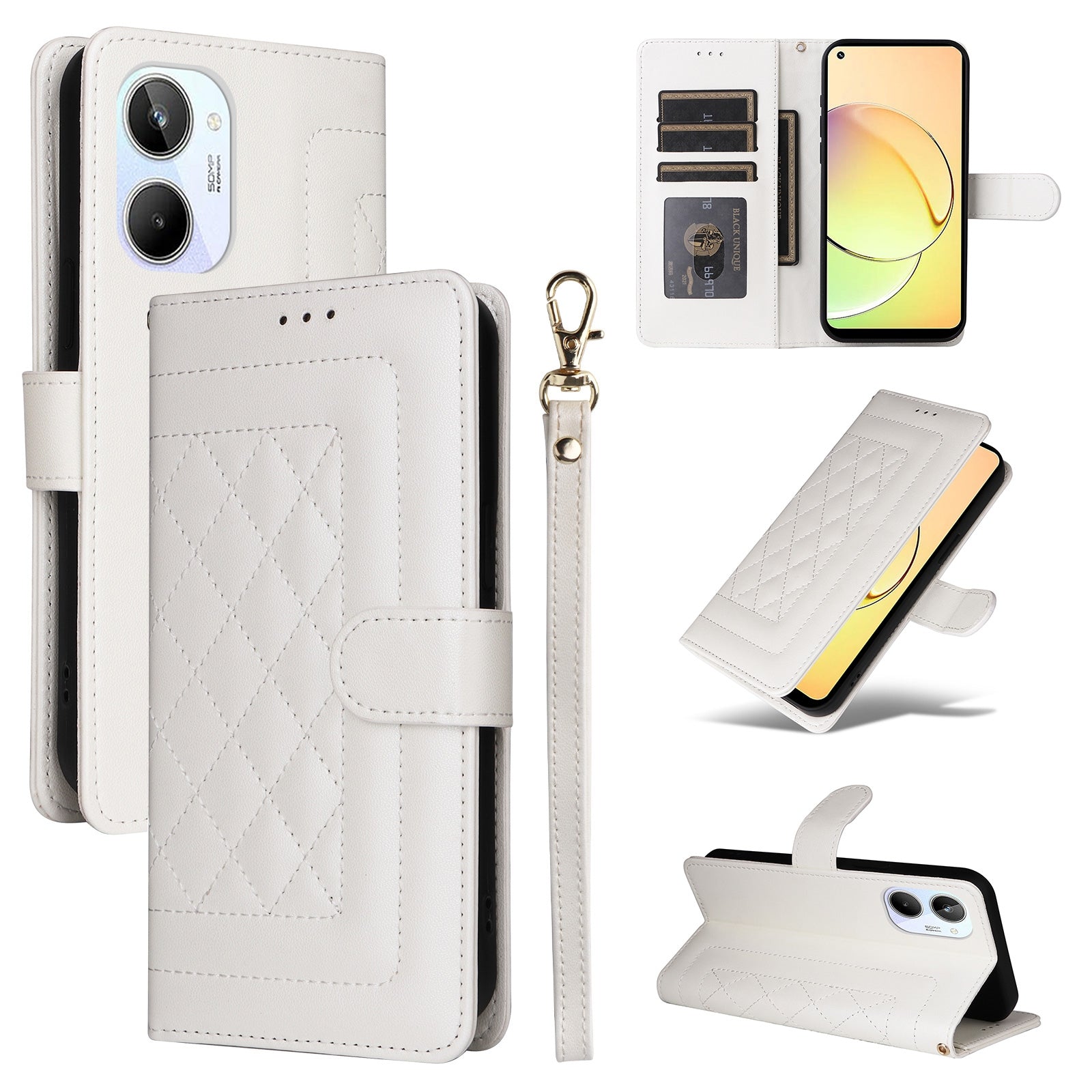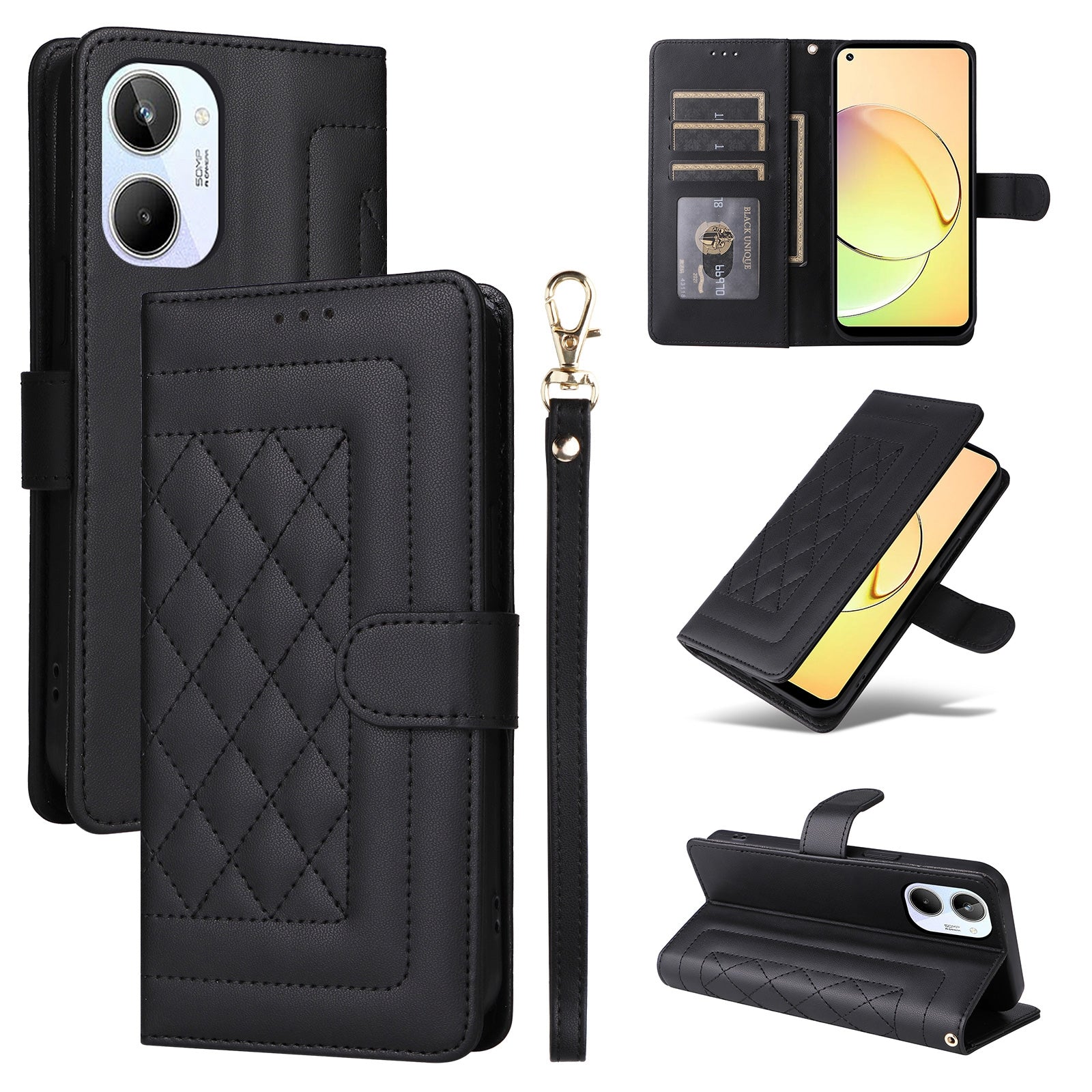 Realme 10 4G Diamond Lattice Leather Flip Phone Case - Durable and Convenient Holder with Precision Cutouts