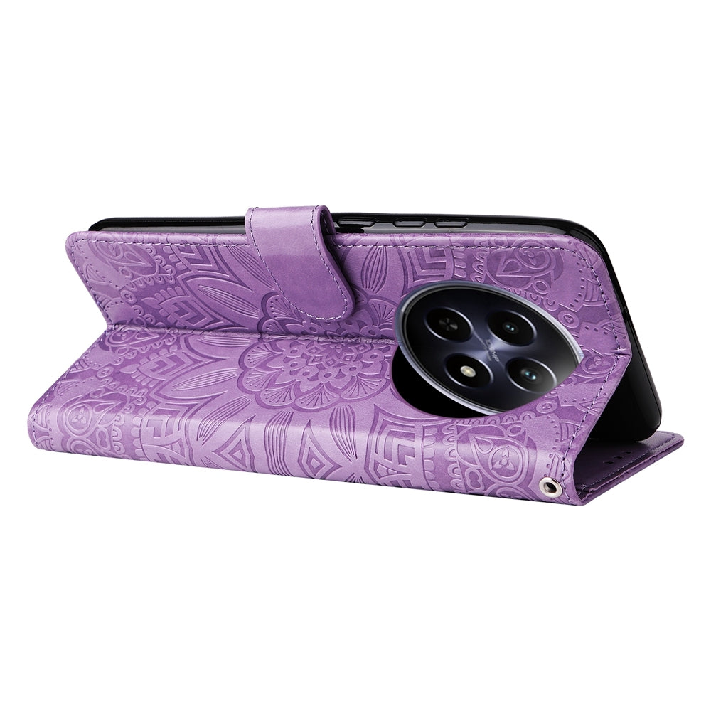 Realme 12 5G Sunflower Embossed Leather Wallet Phone Case with Kickstand and Card Holder