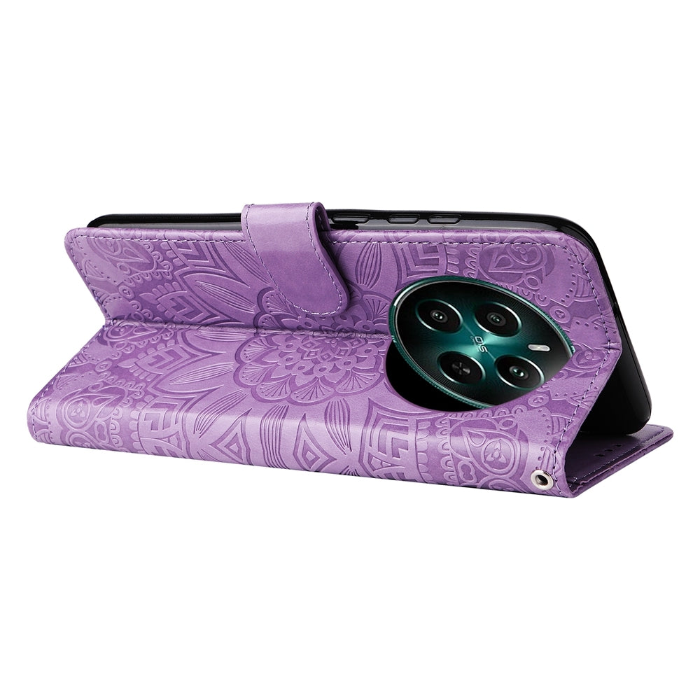Realme 12+ Sunflower Embossed Leather Wallet Phone Case with Kickstand and Card Holder