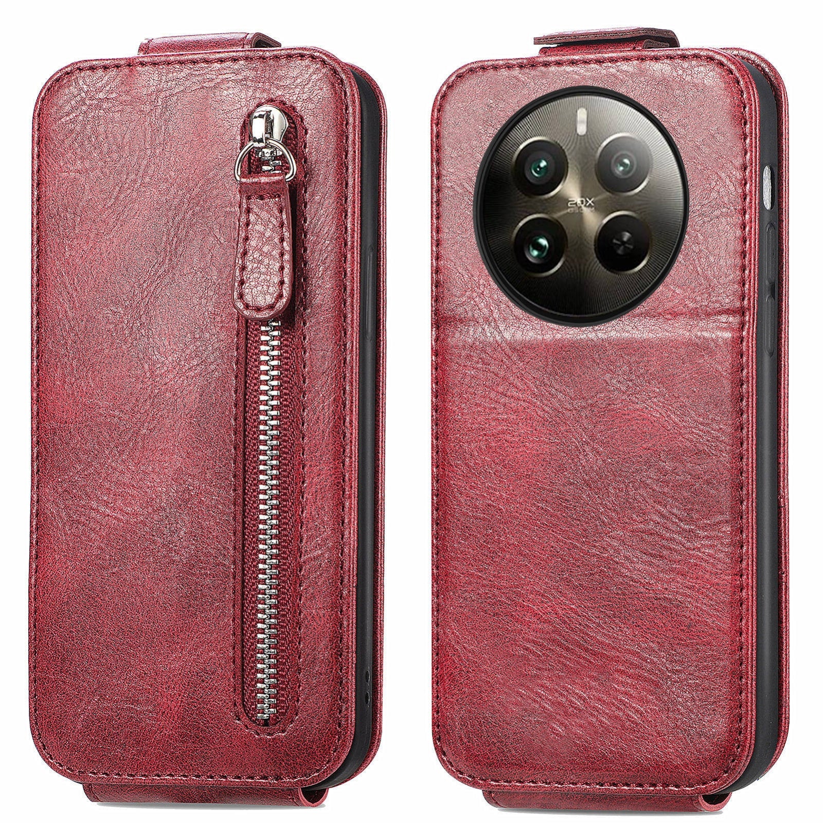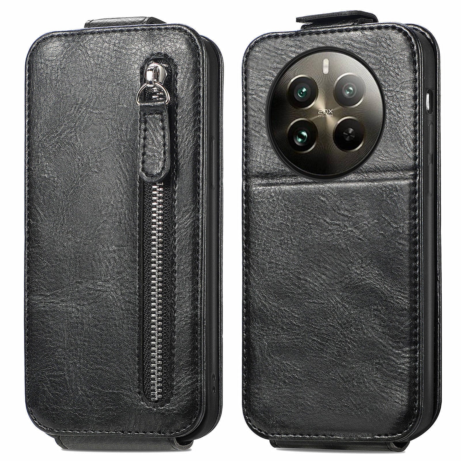 Realme 12+ Zipper Wallet Case - Vertical Flip Leather Phone Cover with Multiple Card Slots and Stand