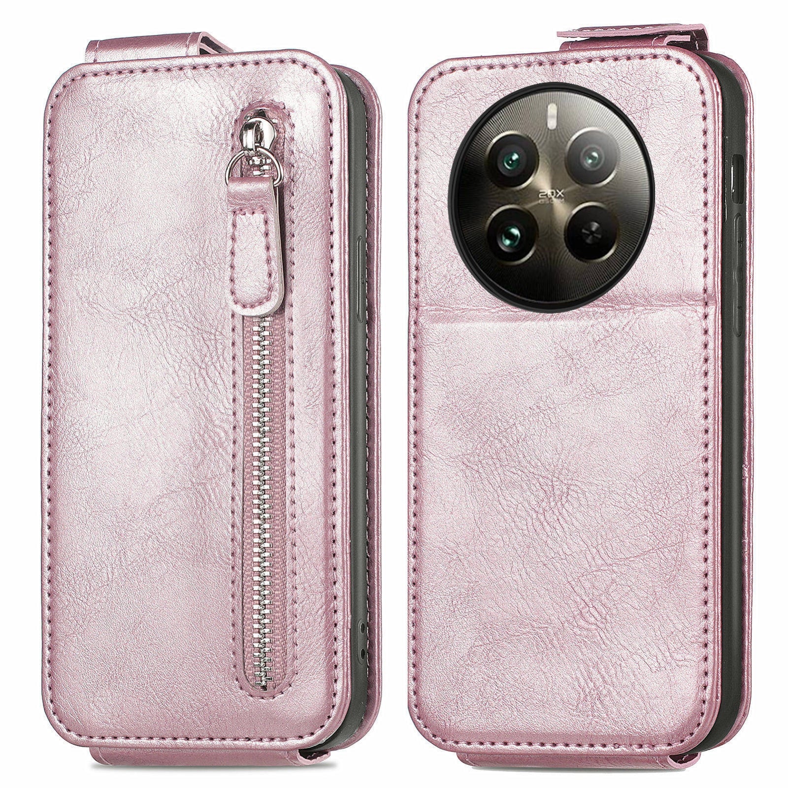 Realme 12 Pro Zipper Wallet Case - Vertical Flip Leather Phone Cover with Multiple Card Slots and Stand