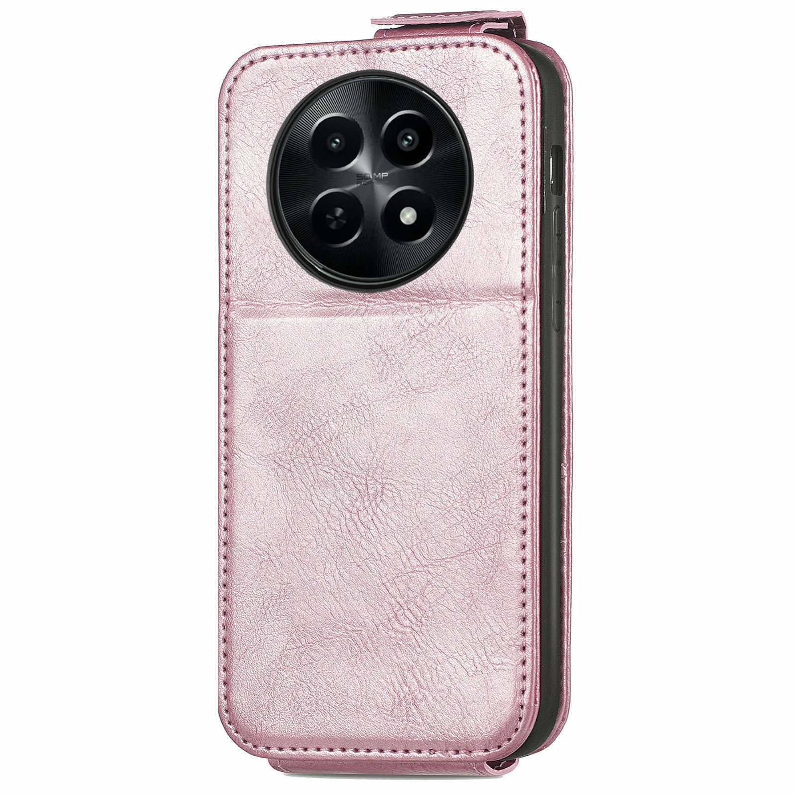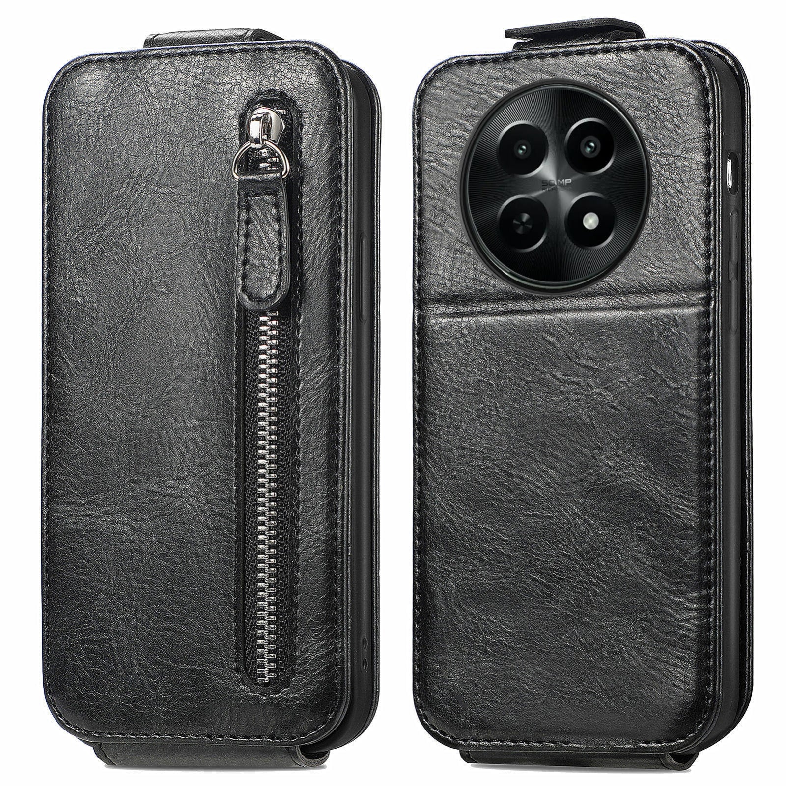 Realme 12 Zipper Wallet Case - Vertical Flip Leather Phone Cover with Multiple Card Slots and Stand