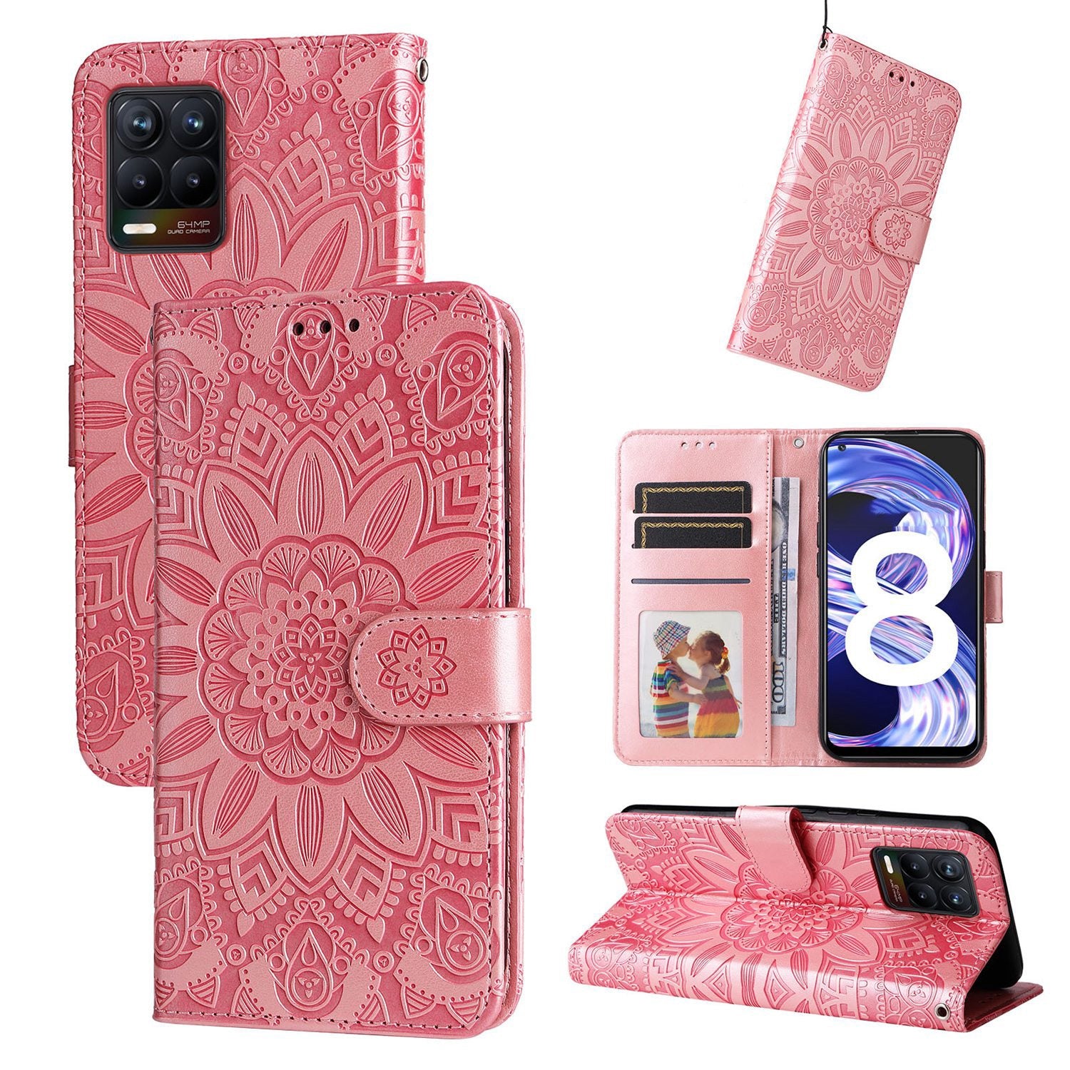 Realme 8 4G Sunflower Embossed Leather Wallet Phone Case with Kickstand and Card Holder