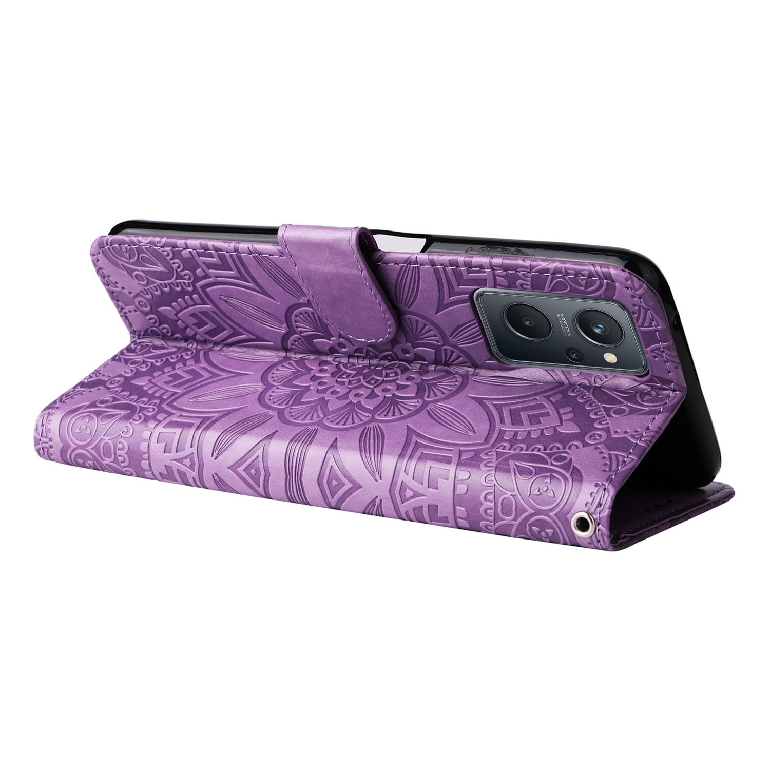 Realme A76 4G Sunflower Embossed Leather Wallet Phone Case with Kickstand and Card Holder